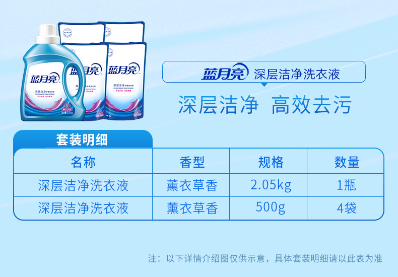 蓝月亮薰衣草洁净洗衣液2.05kg+袋装500g*4 80002442(单位:套) 蓝色