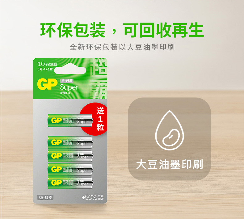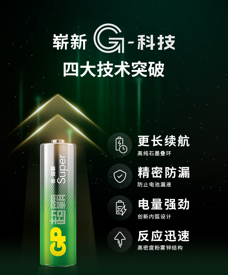 GP超霸Super碱性电池5号4+1粒卡装智能门锁专用 电子指纹锁密码锁 超霸5号4+1粒卡装