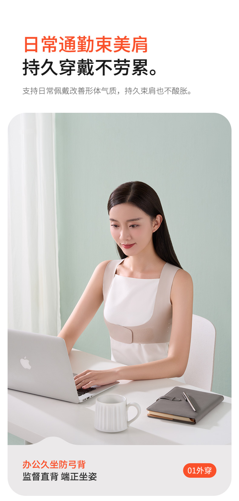 飞乐思矫姿带背部矫正带驼背神器男女士内穿无痕成人隐形贝贝佳(单位:件) 象牙色