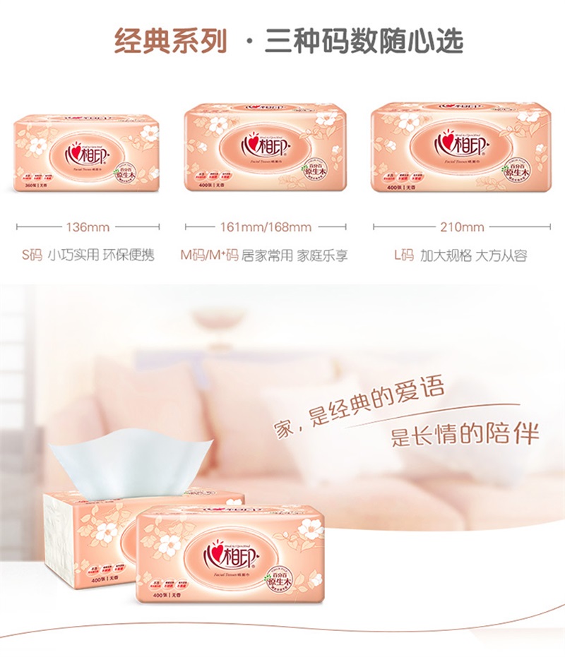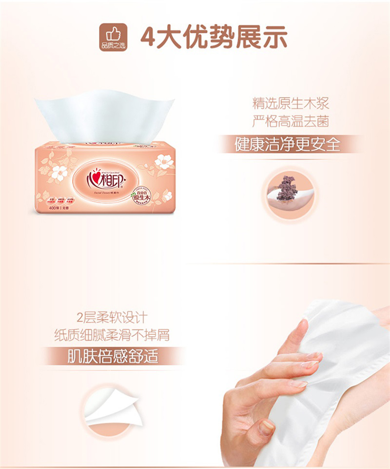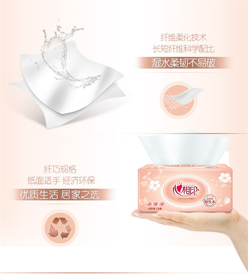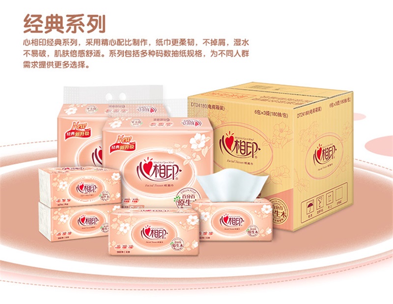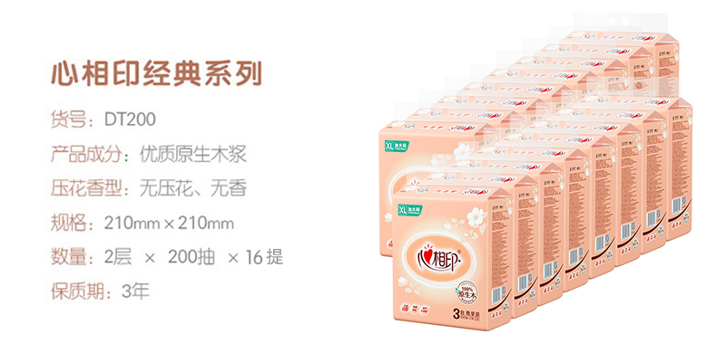 心相印DT200经典系列200抽二层塑装纸面巾3包×16提XL码(箱装) 白色