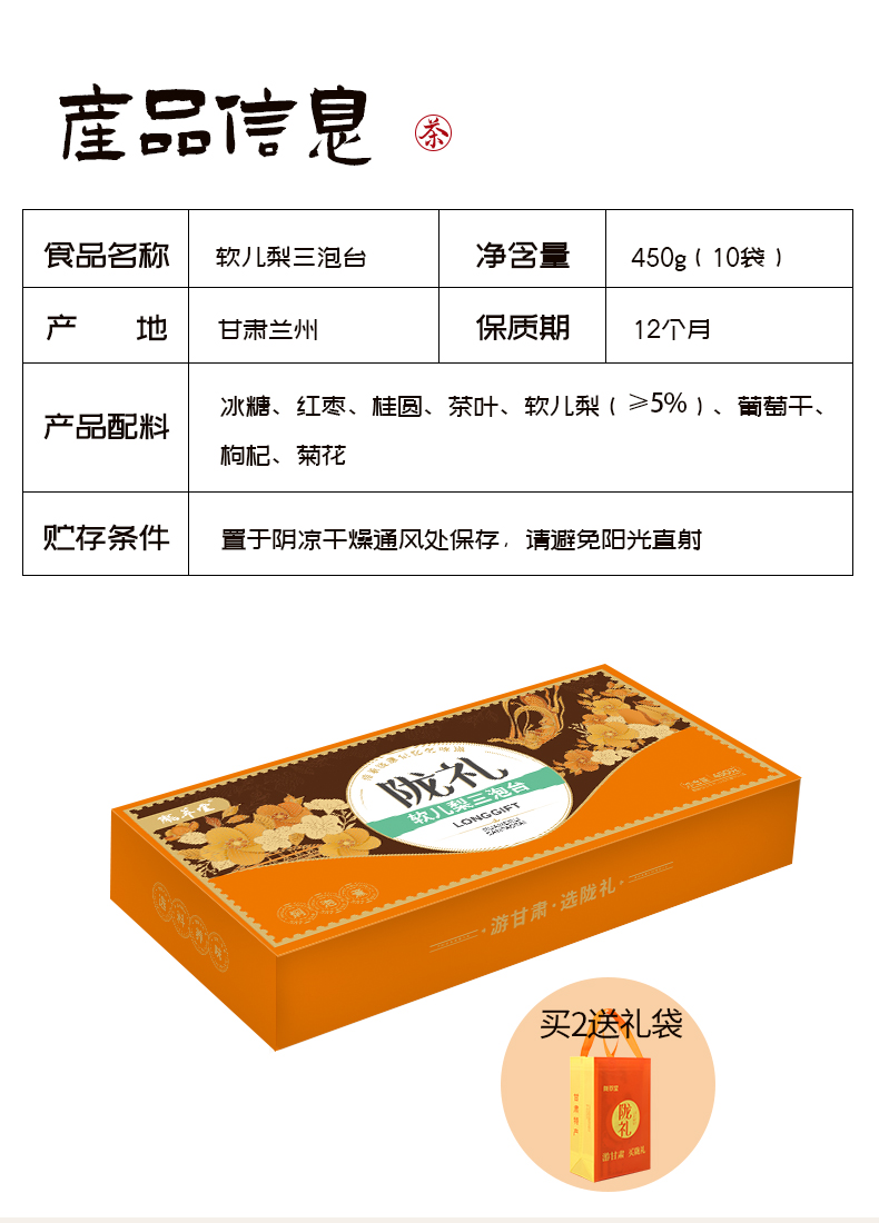 隴萃堂 陇礼 软儿梨三炮台 450g*2 灰橙色(单位:盒)