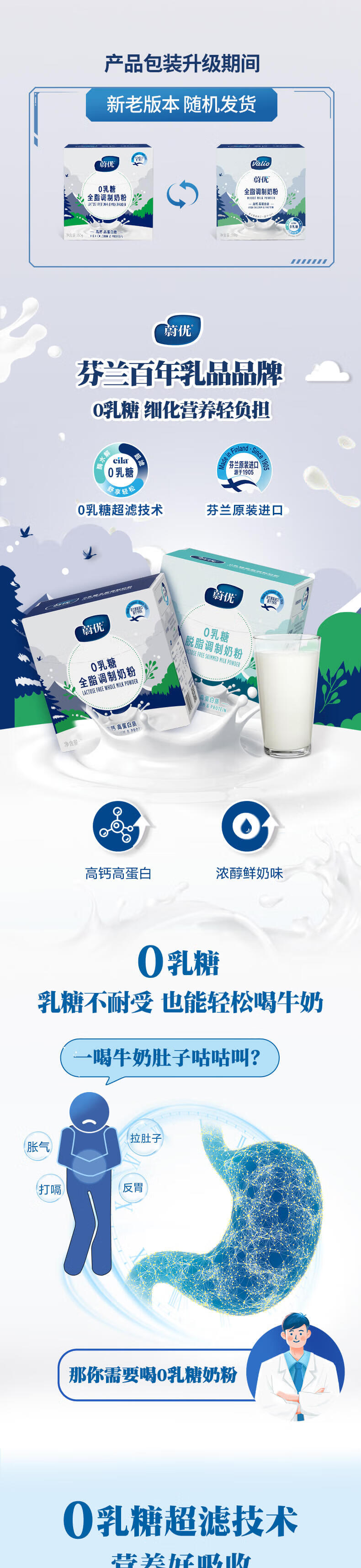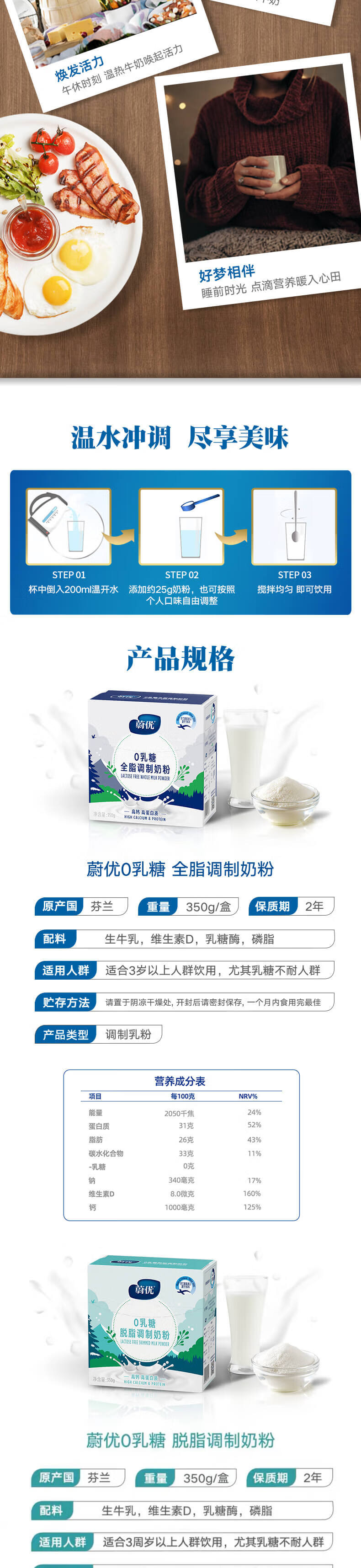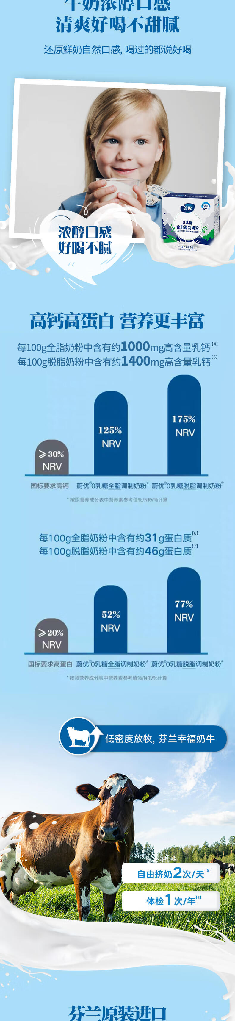 VALIO蔚优 0乳糖全脂奶粉 低GI奶粉 中老年成人奶粉350g*2盒 高钙高蛋白