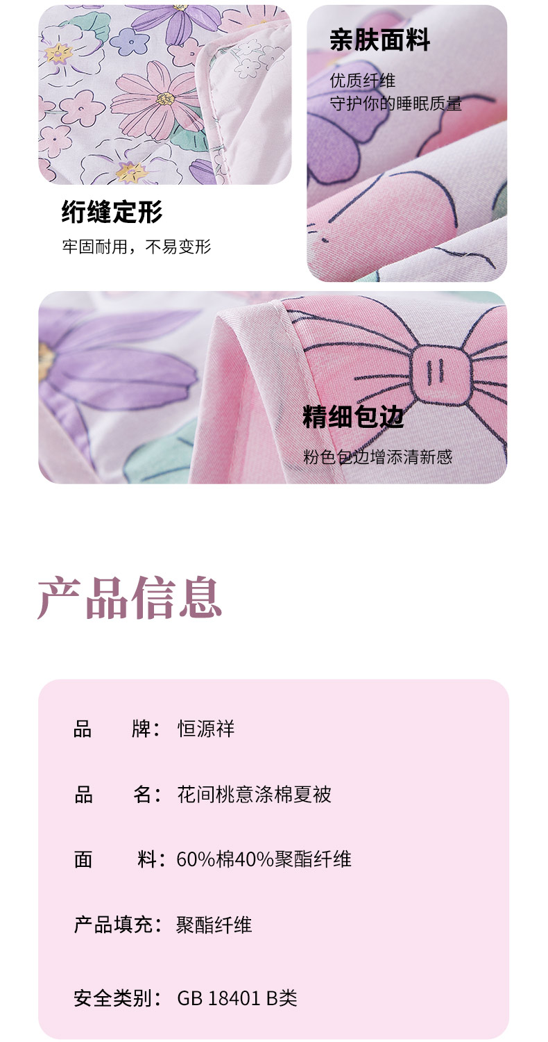 恒源祥花间桃意涤棉夏被HYX171BZ 200x230cm条 花色