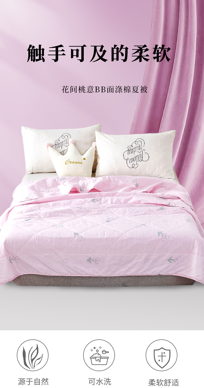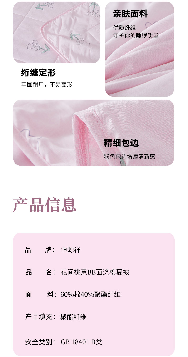 恒源祥花间桃意BB面涤棉夏被HYX172BZ 200x230cm条 粉色