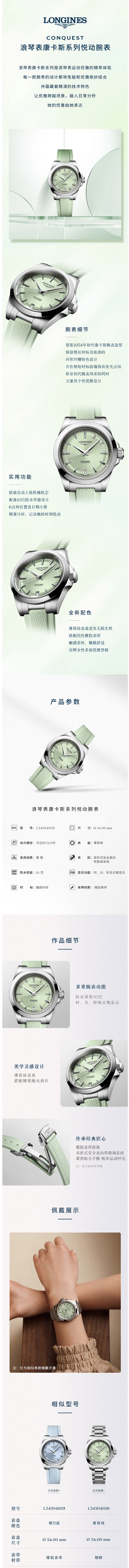 浪琴Longines 康卡斯系列悦动彩盘机械手表女表 L3.430.4.02.9(单位1块) 绿色