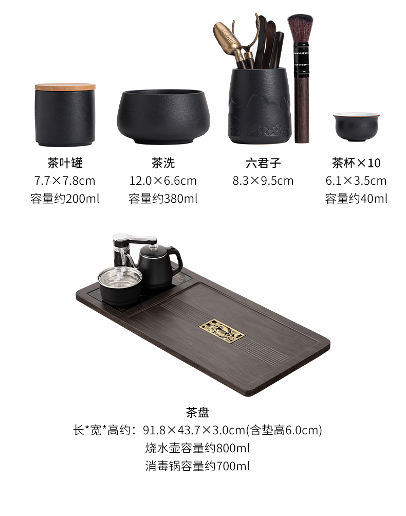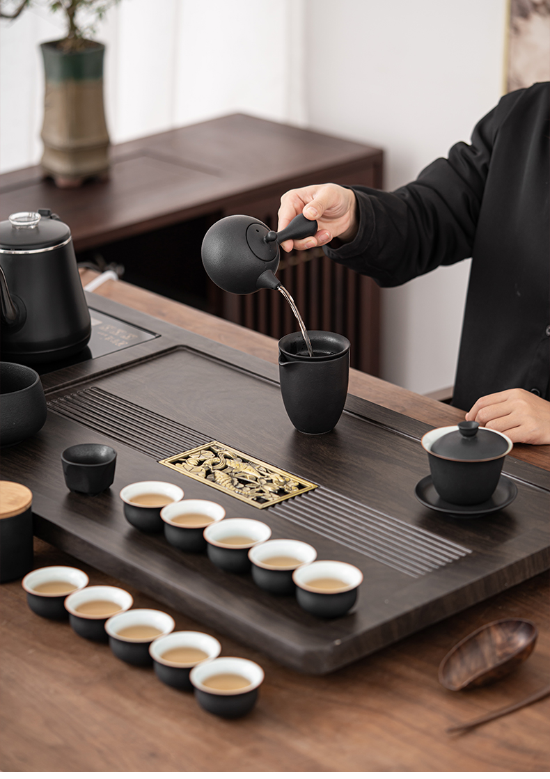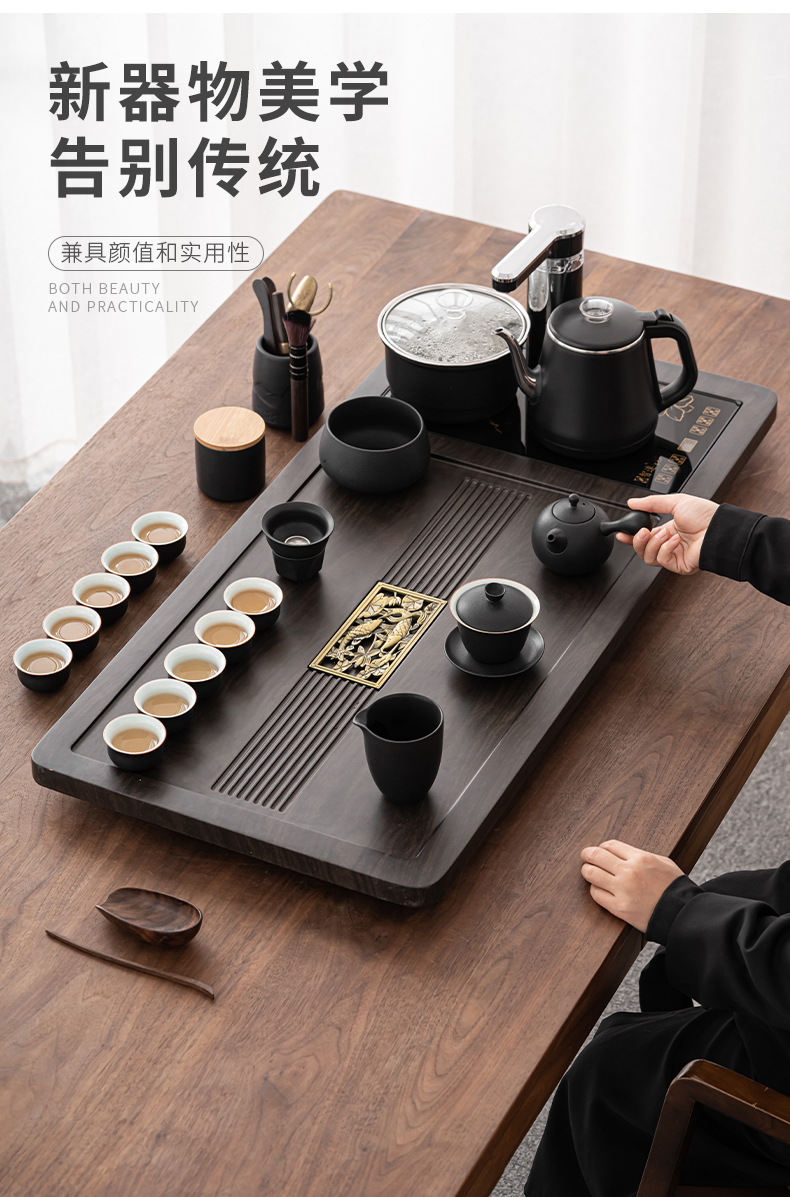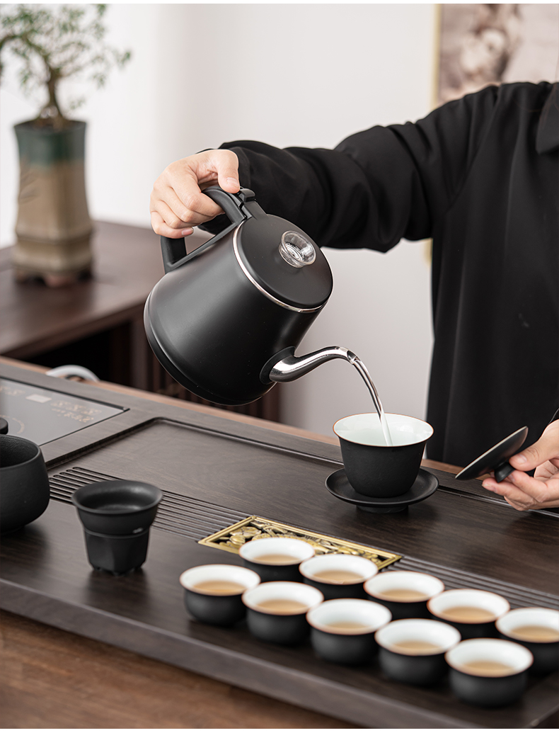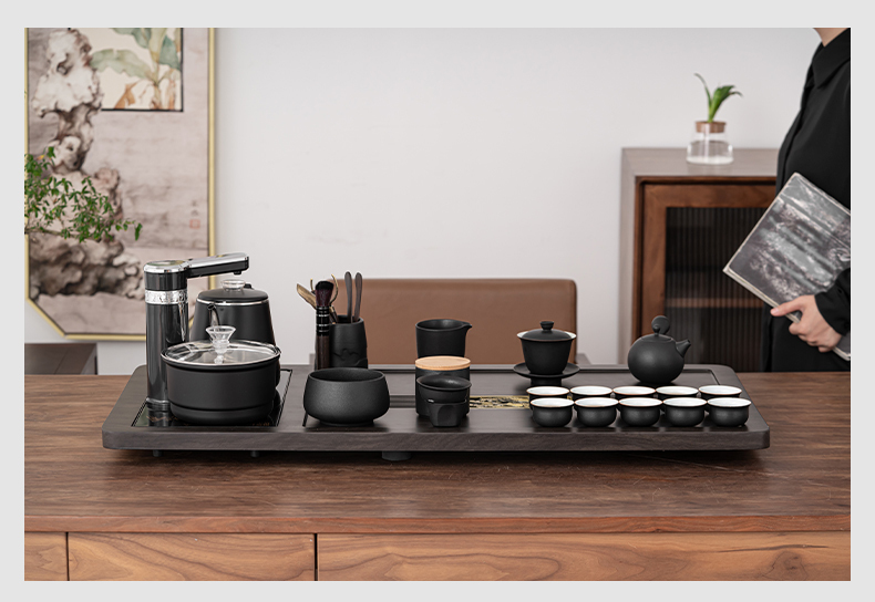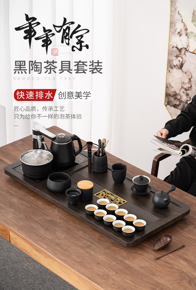 苏氏陶瓷(SUSHI CERAMICS)自动烧水壶一体年年有余茶盘配整套轻奢粗陶茶具(单位:套) 黑色