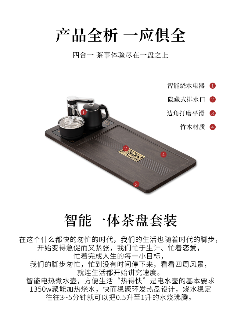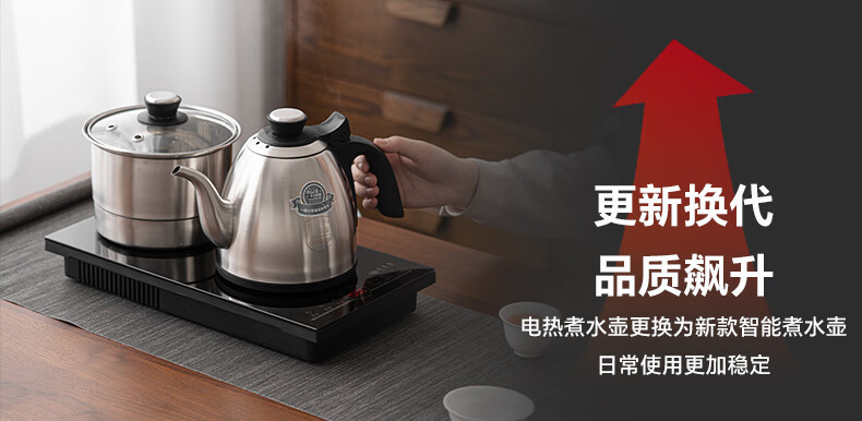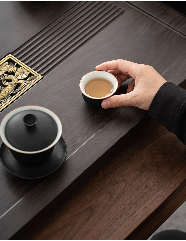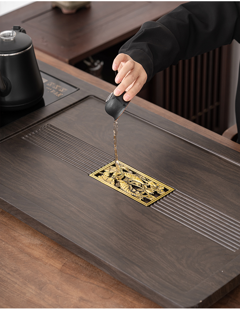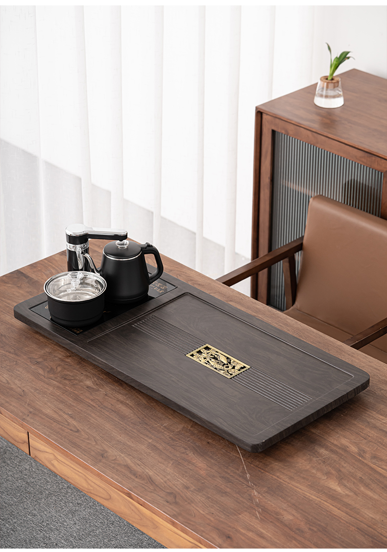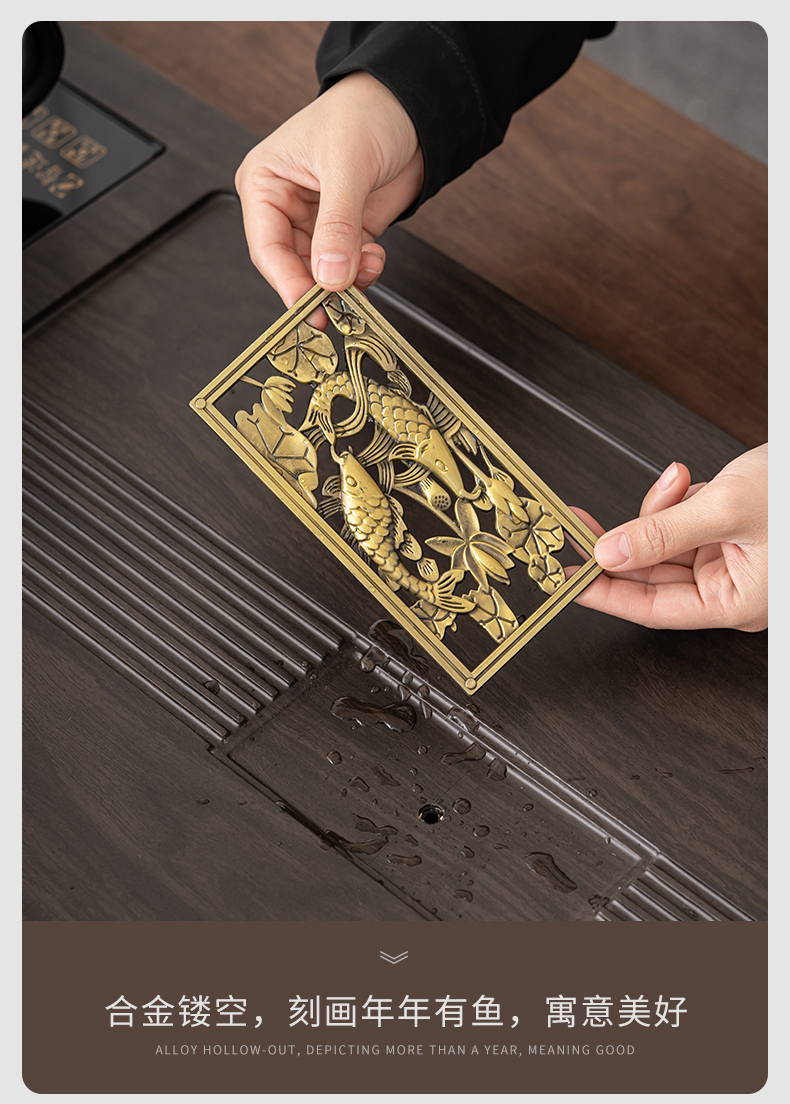 苏氏陶瓷(SUSHI CERAMICS)自动烧水壶一体年年有余茶盘配整套轻奢粗陶茶具(单位:套) 黑色