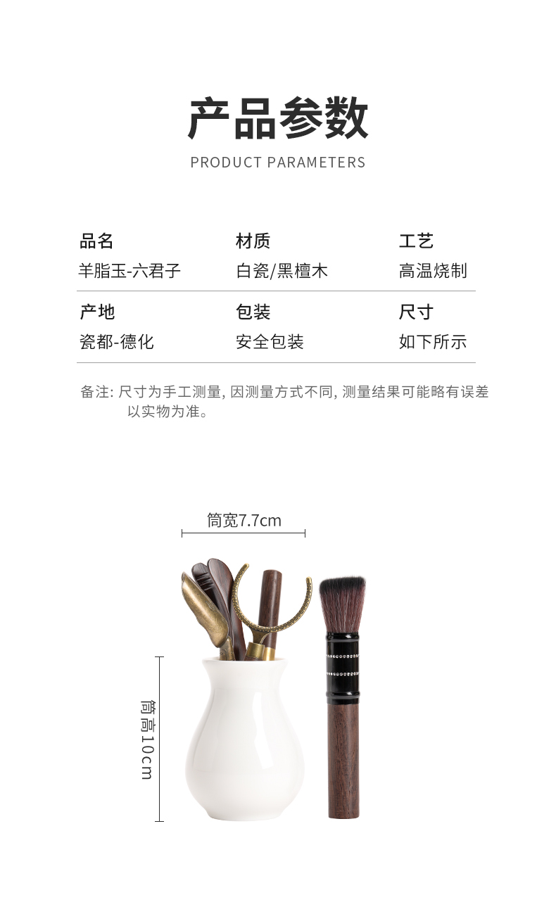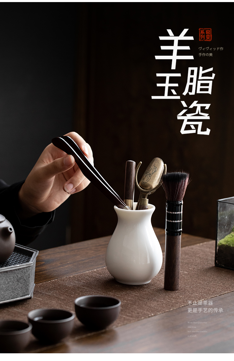 苏氏陶瓷(SUSHI CERAMICS)J0469茶具配件羊脂玉白瓷茶道六君子(单位:套) 白色