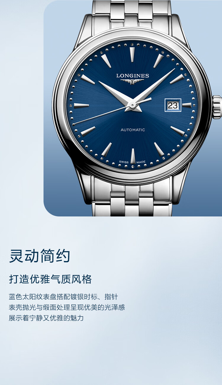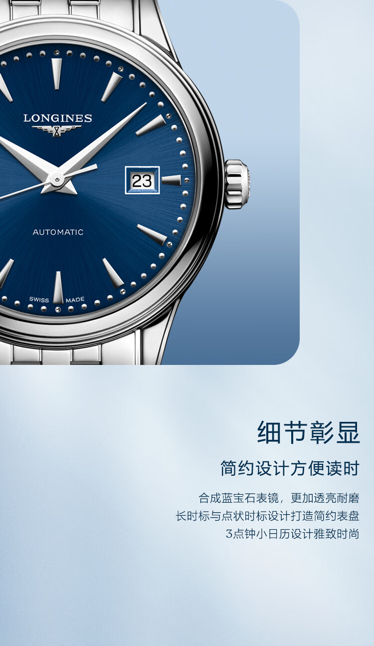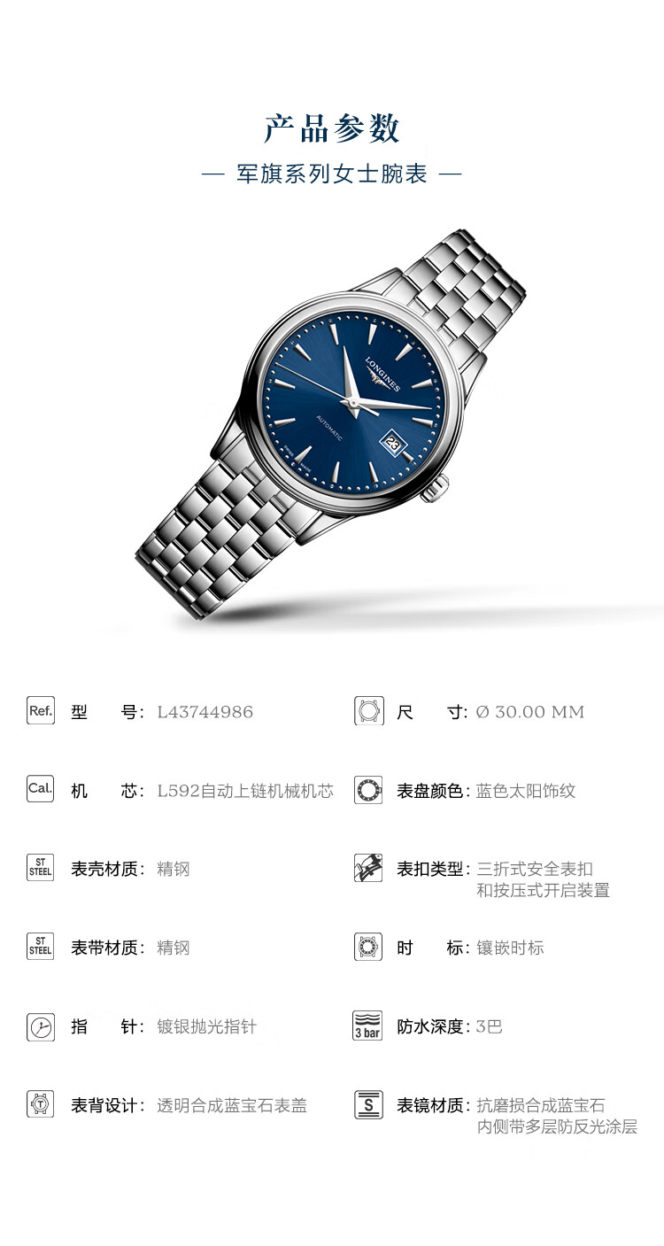 浪琴Longines 军旗系列机械手表女表 L4.374.4.98.6(单位1块) 蓝色