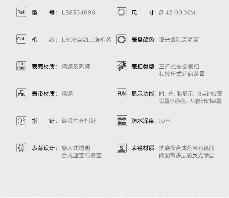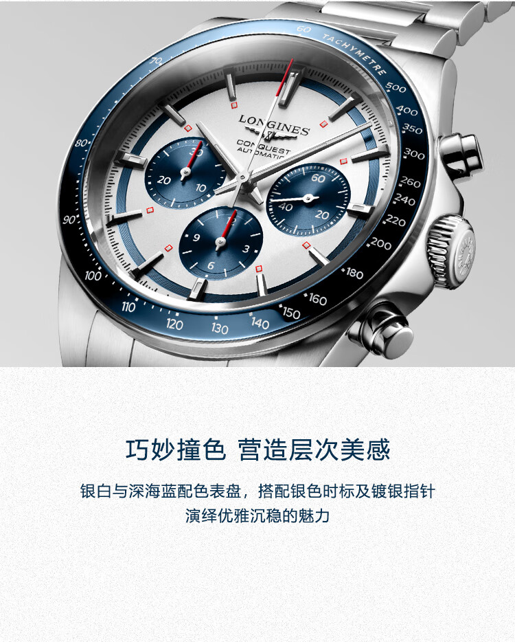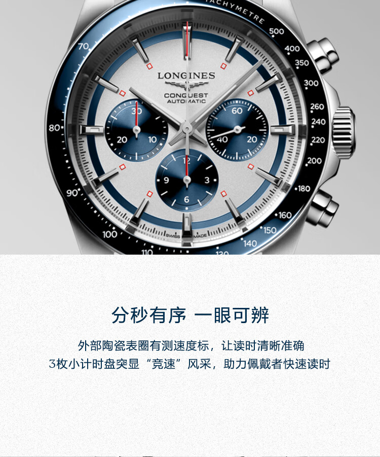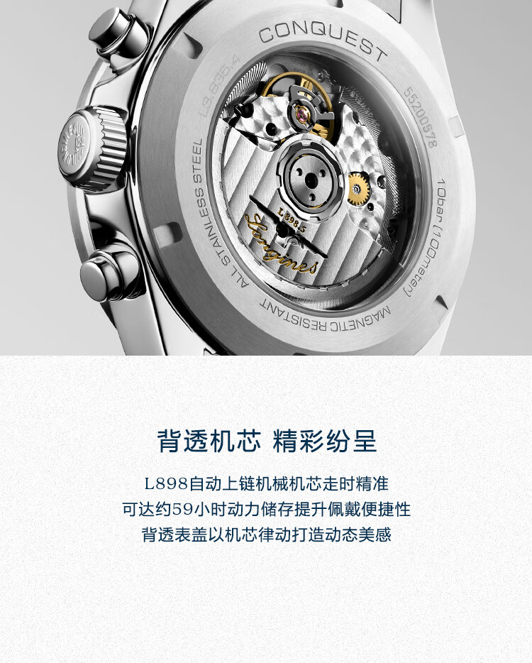 浪琴Longines 康卡斯系列悦动彩盘机械手表男表 L3.835.4.98.6(单位1块) 银色