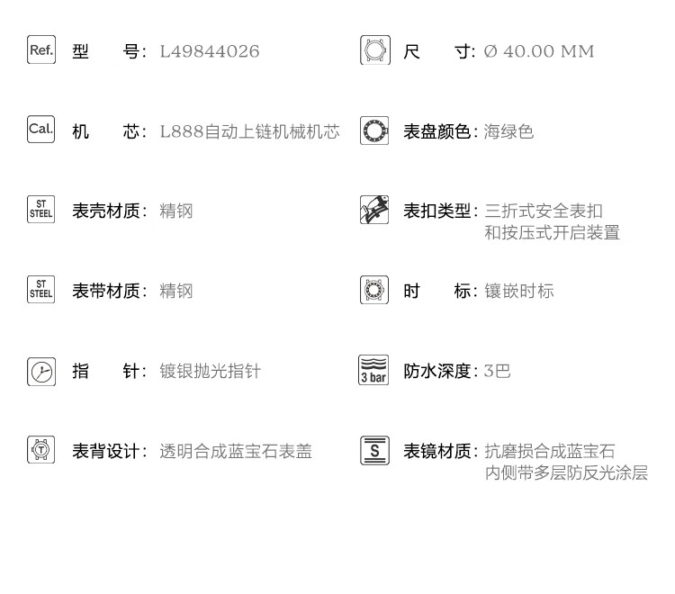 浪琴Longines 军旗系列机械手表男表 L4.984.4.02.6(单位1块) 绿色