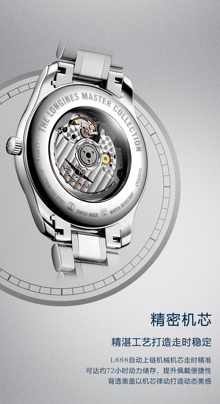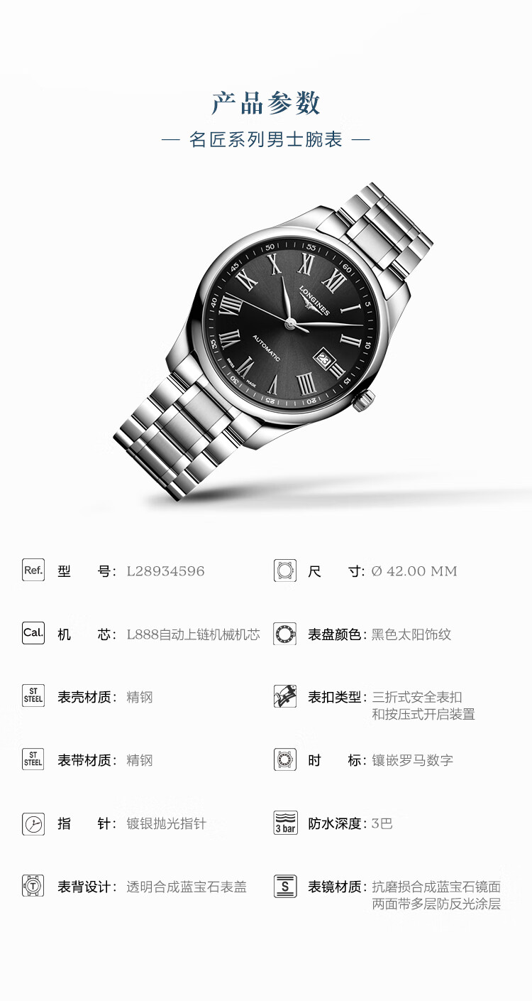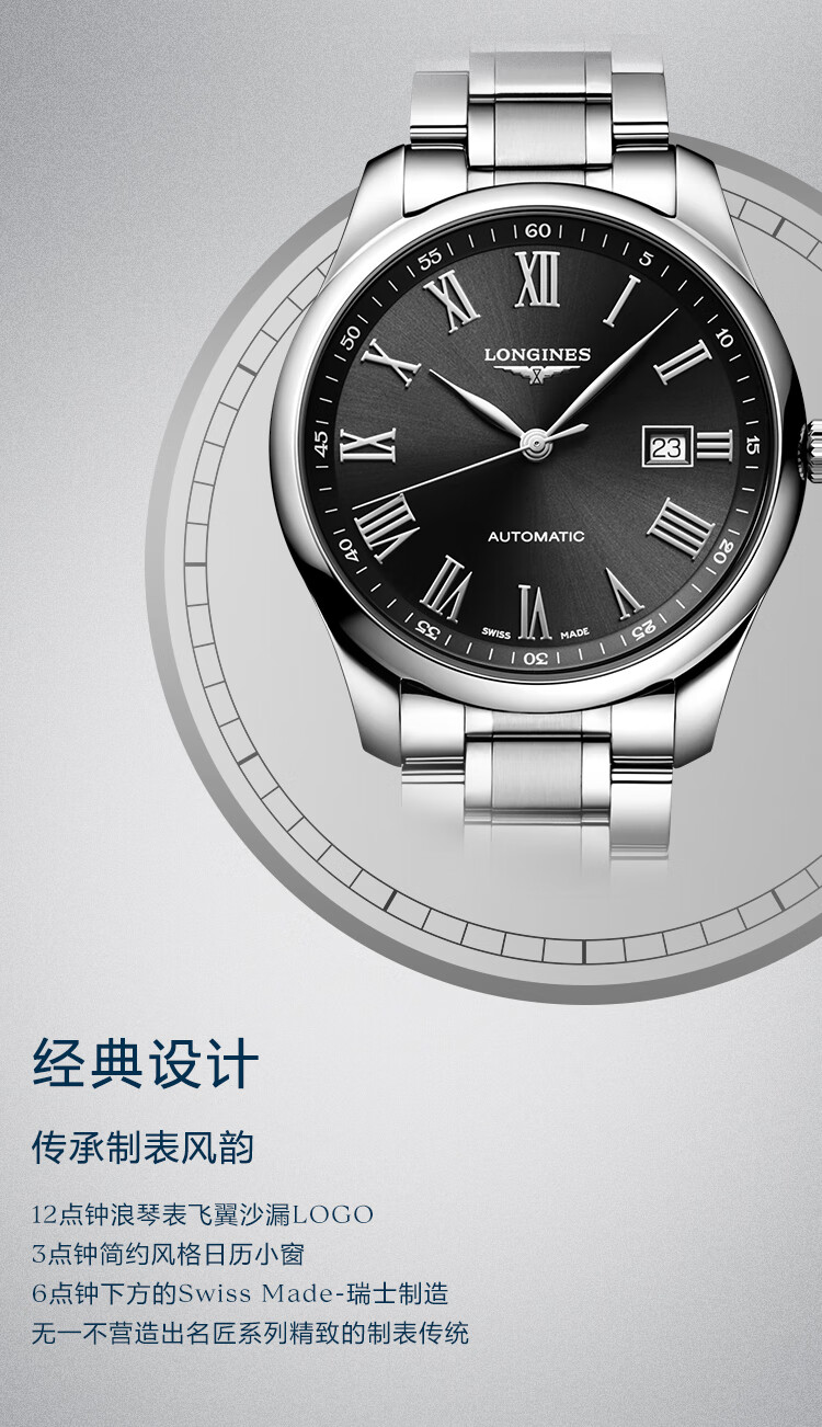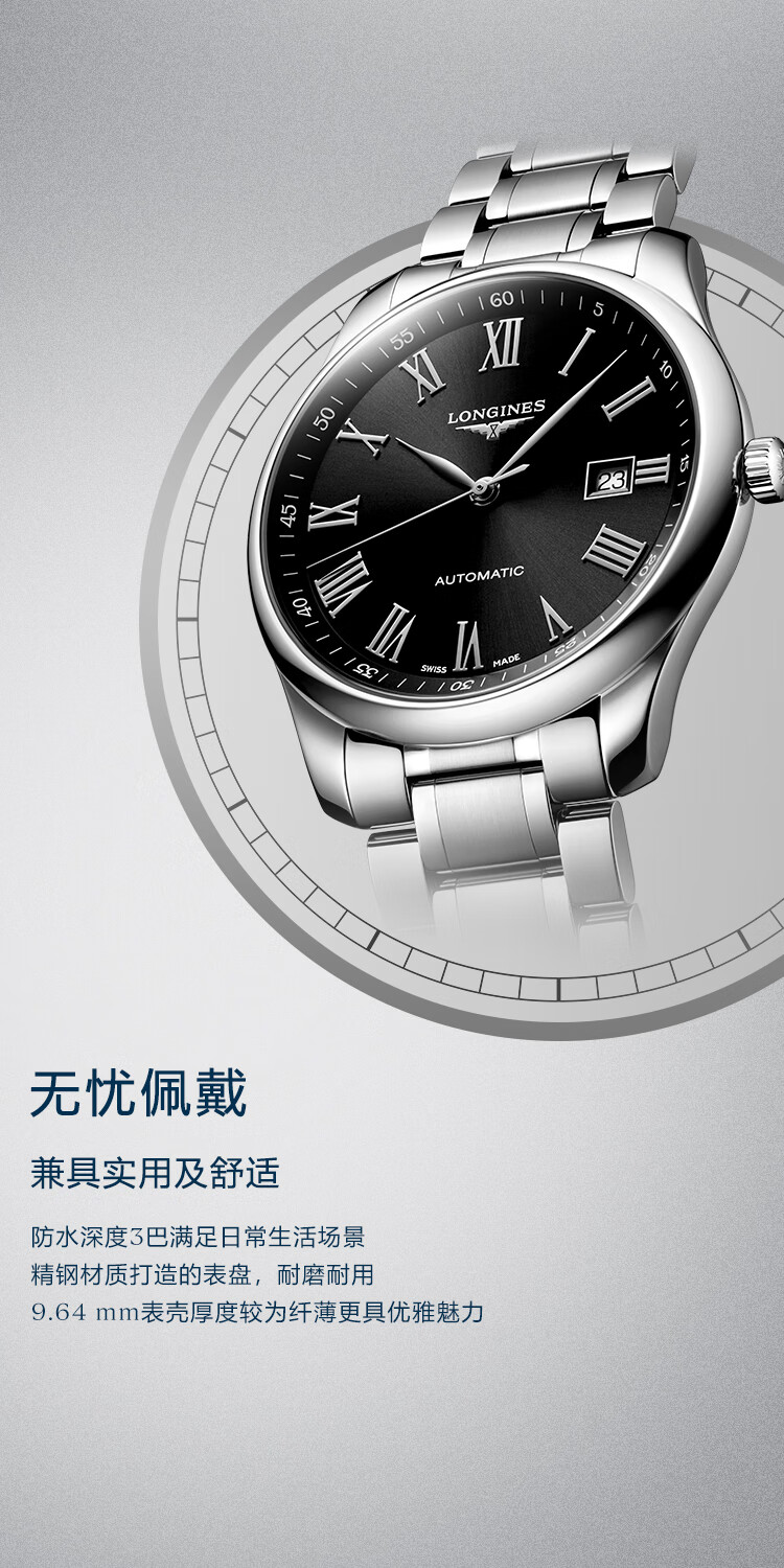 浪琴Longines 名匠系列机械手表男表 L2.893.4.59.6 (单位1块) 黑色