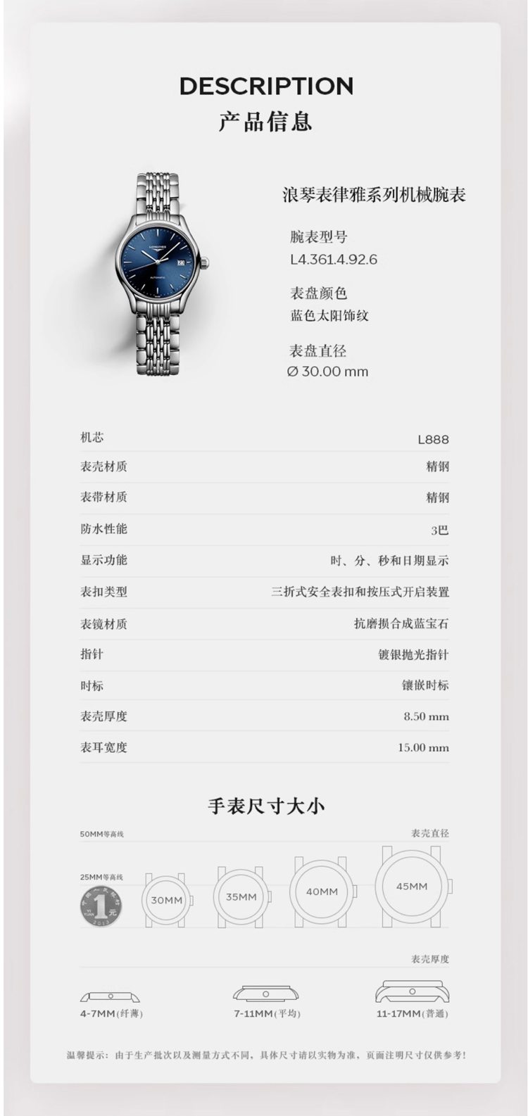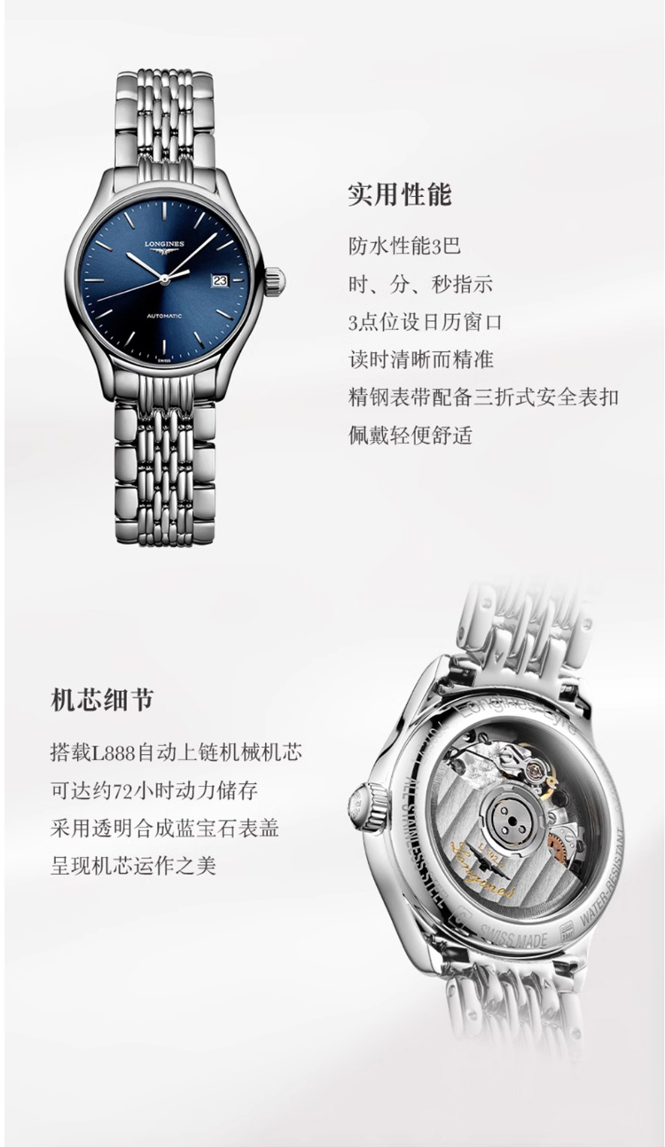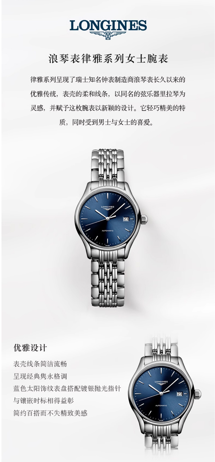 浪琴Longines 雅系列机械手表女表 L4.361.4.92.6(单位1块) 蓝色