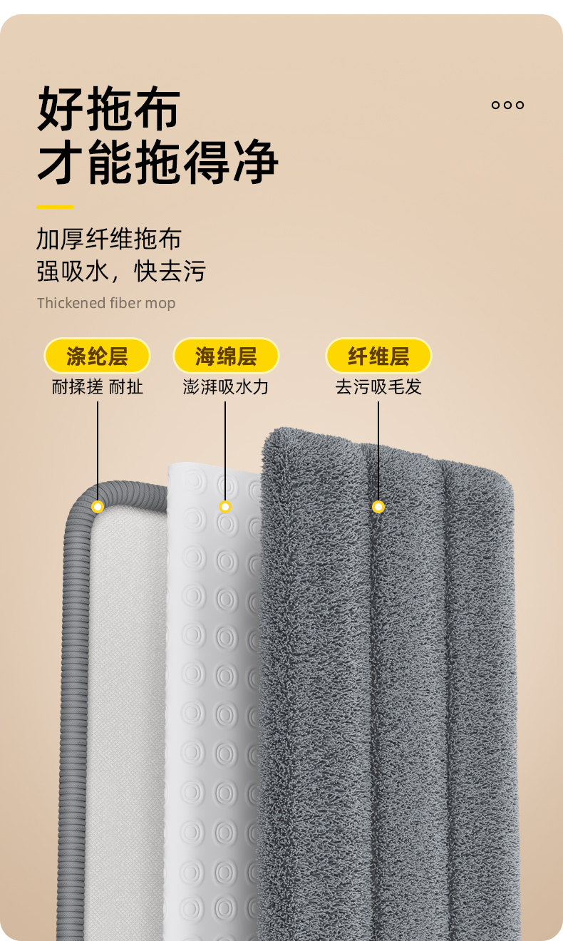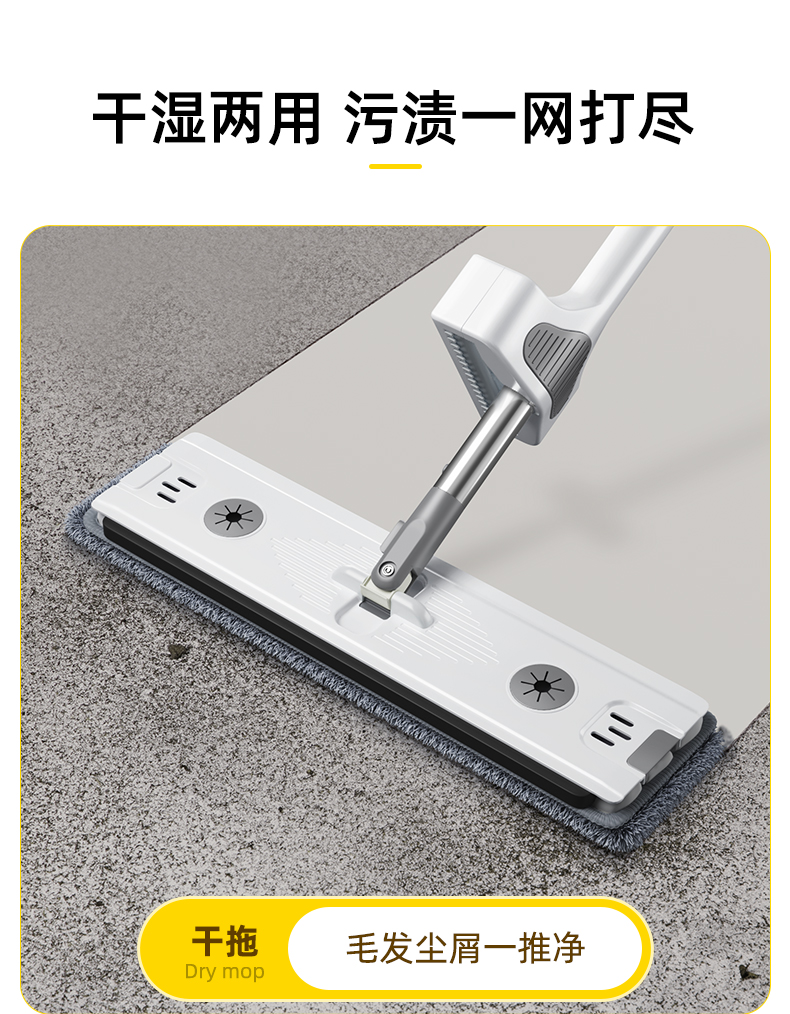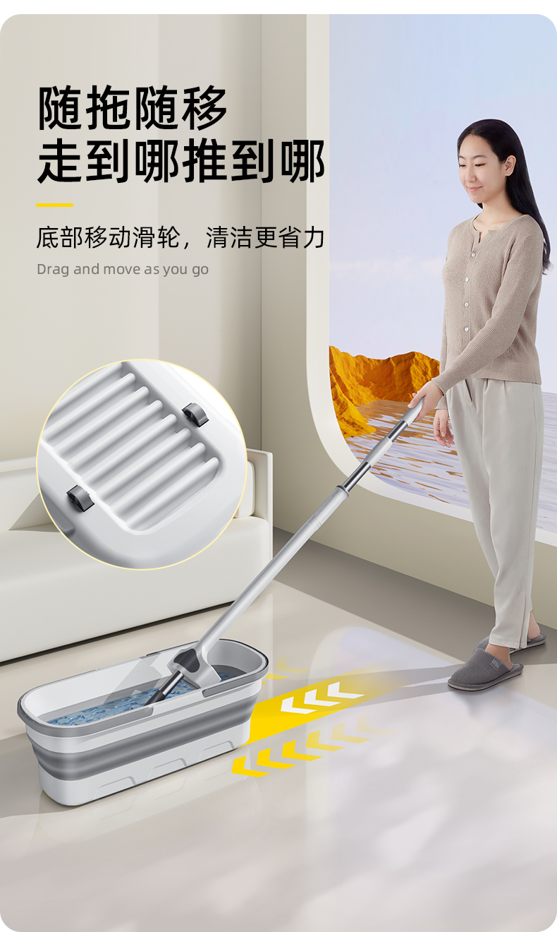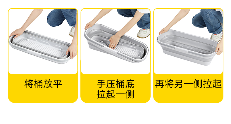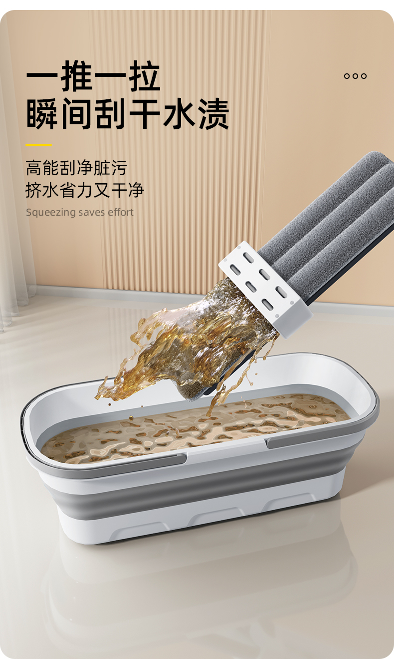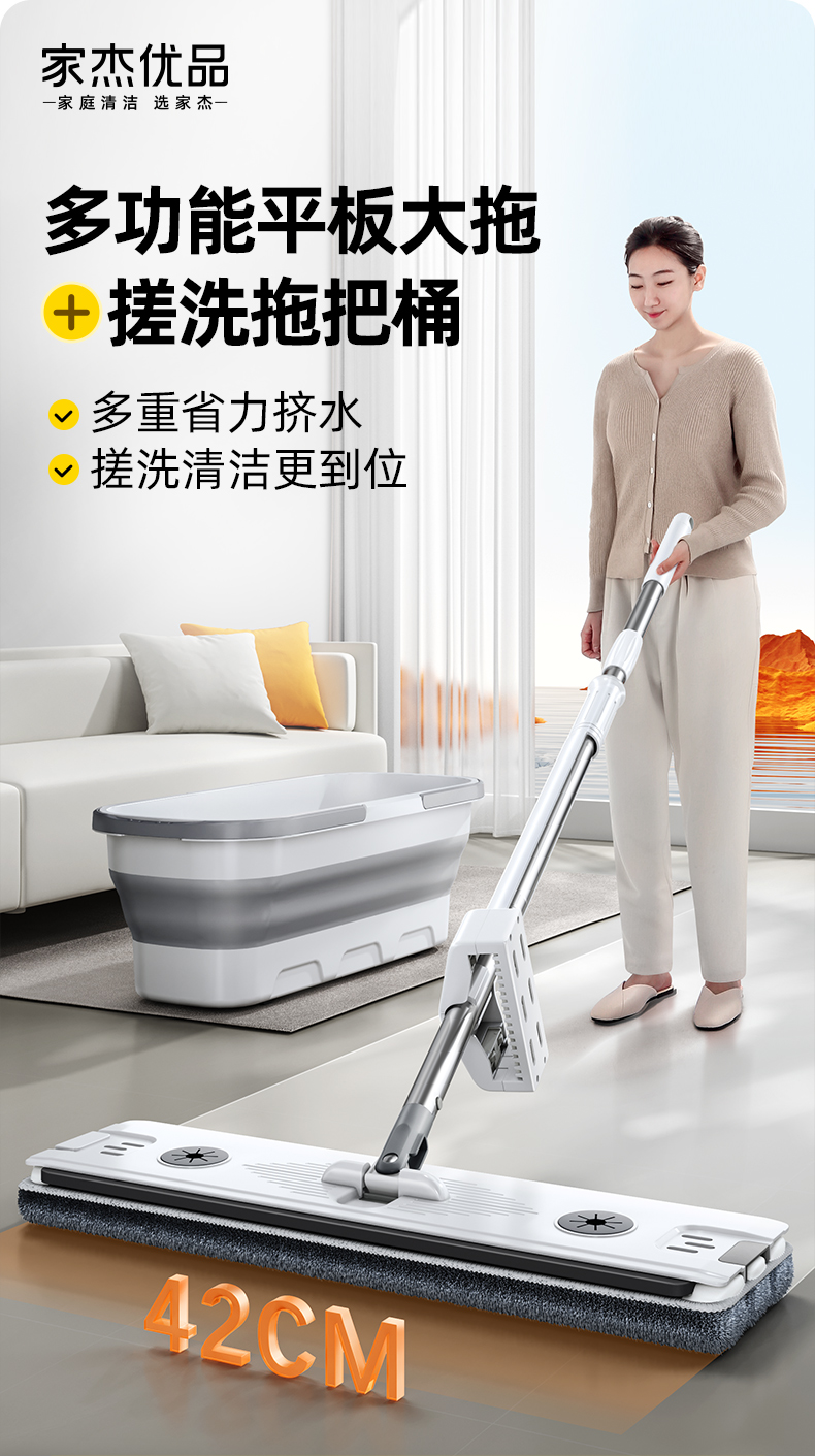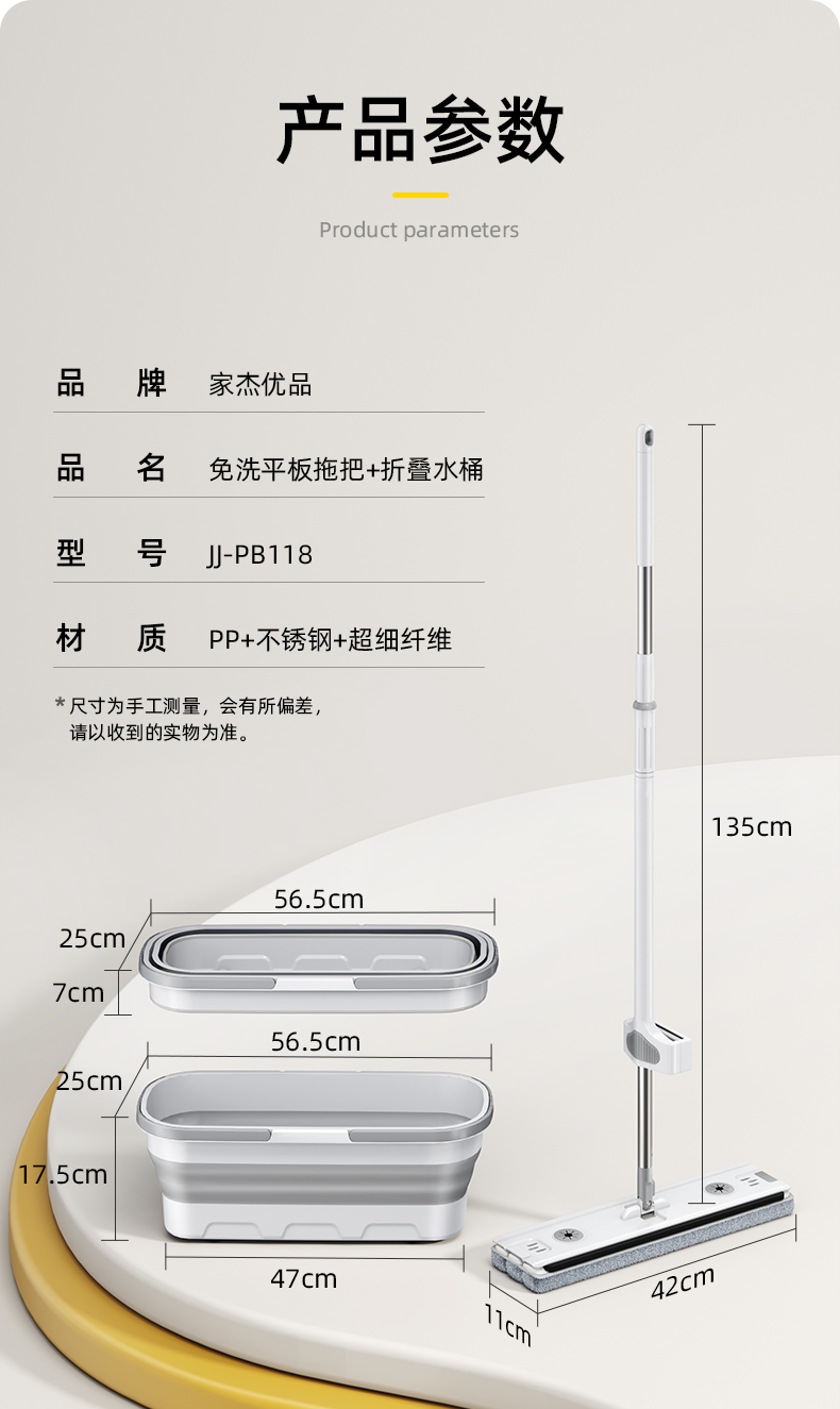 家杰优品平板拖把家用一拖净免手洗2023拖布墩布吸水干湿两用带折叠水桶(单位:套) 浅灰色