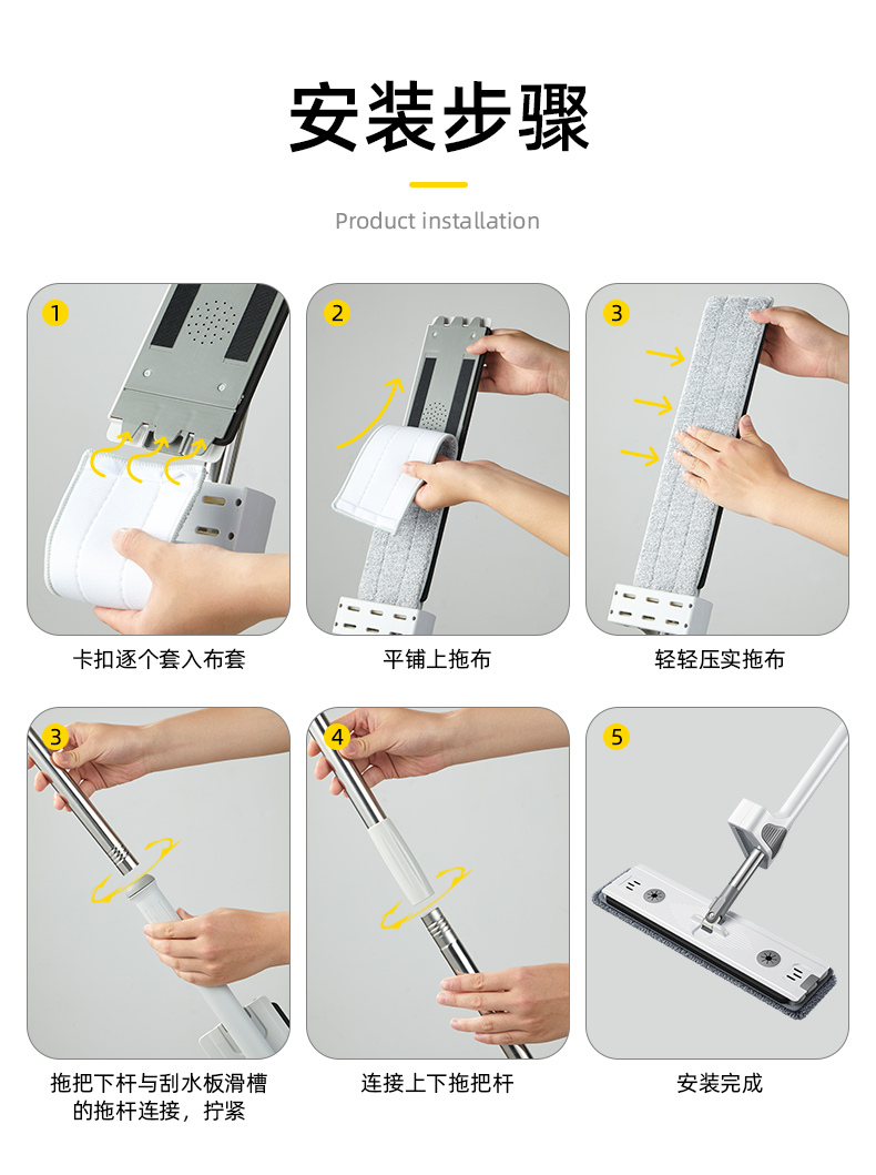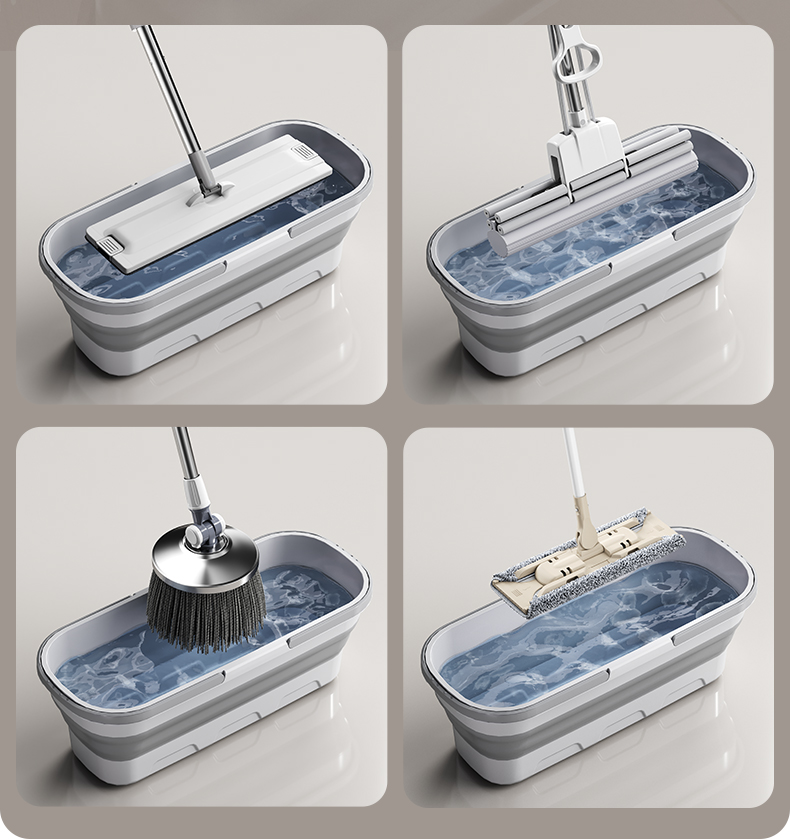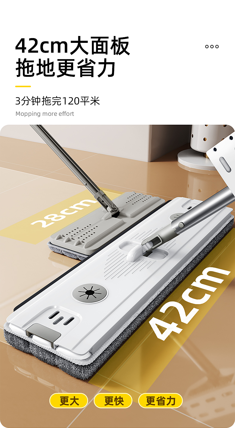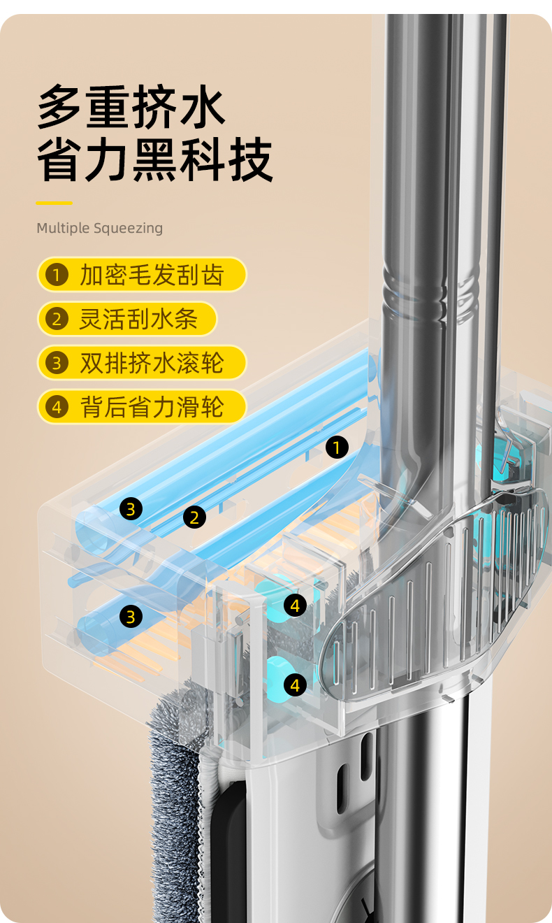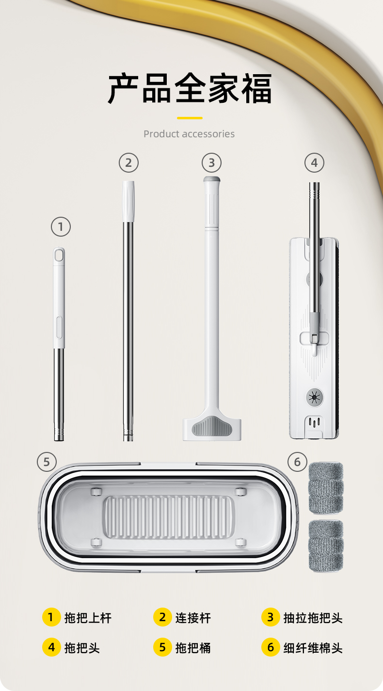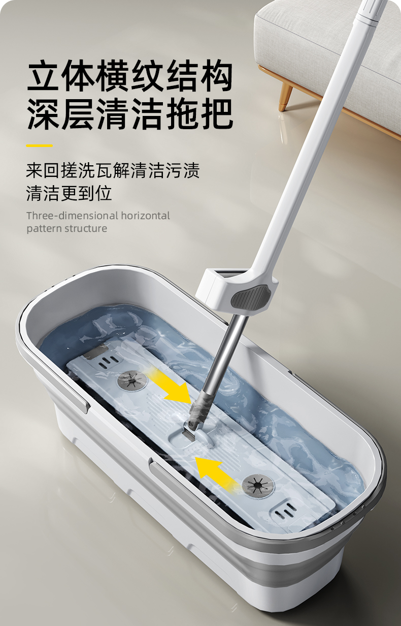 家杰优品平板拖把家用一拖净免手洗2023拖布墩布吸水干湿两用带折叠水桶(单位:套) 浅灰色