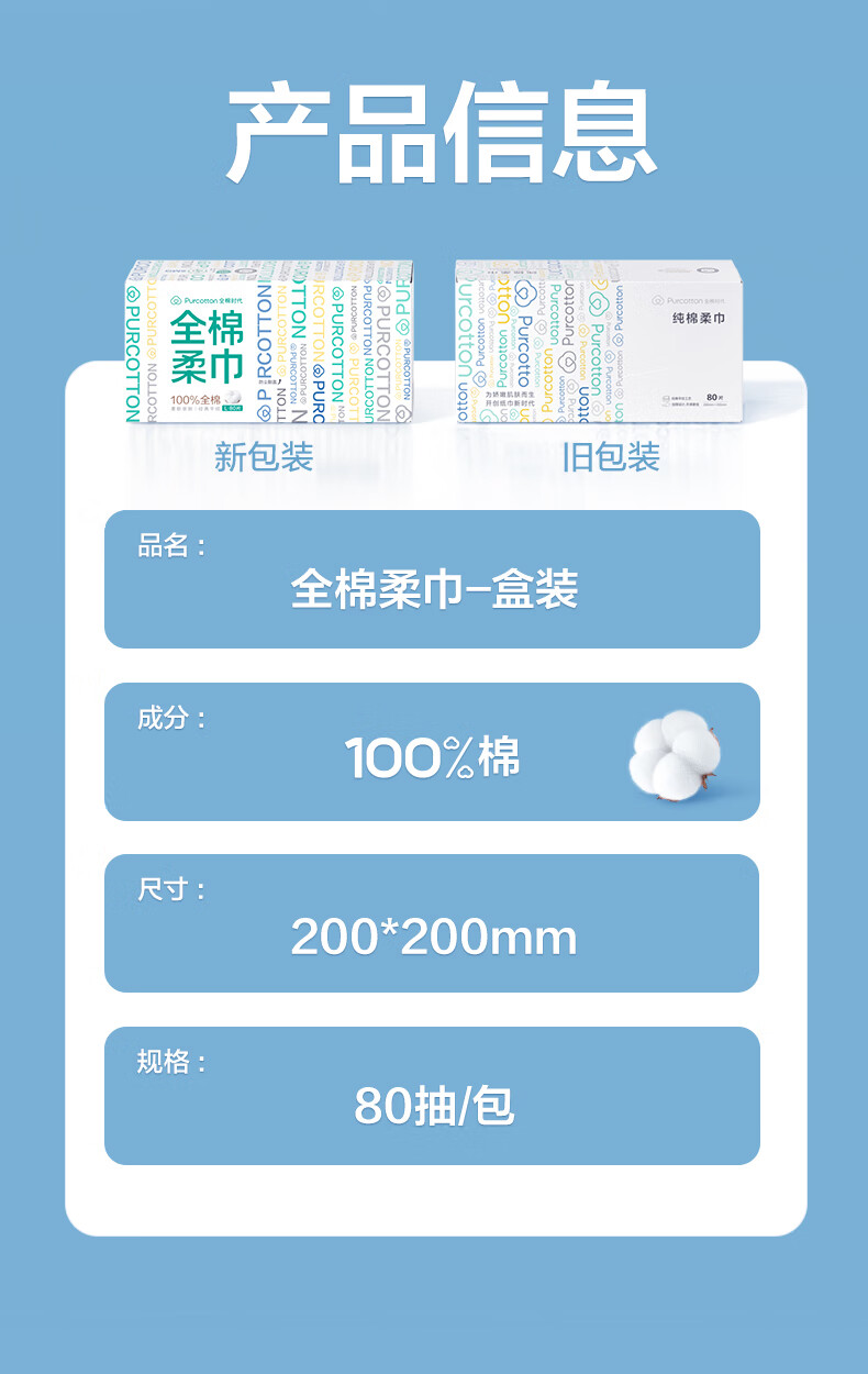 全棉时代 纯棉柔巾45gsm平纹,200mm×200mm,80片/盒(单位:盒) 白色