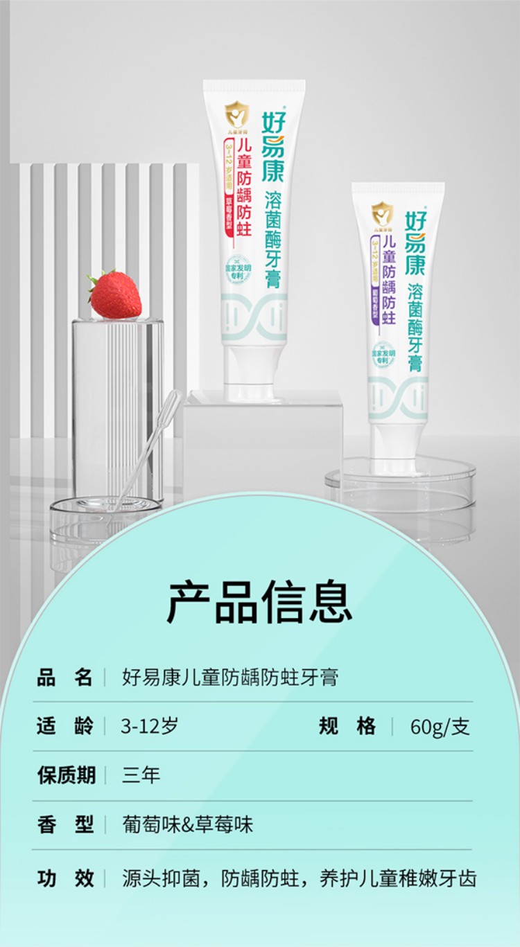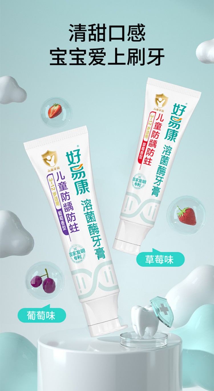 好易康儿童防龋防蛀溶菌酶牙膏(3-12)(葡萄香型)60g(单位:支) 本白色