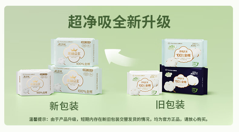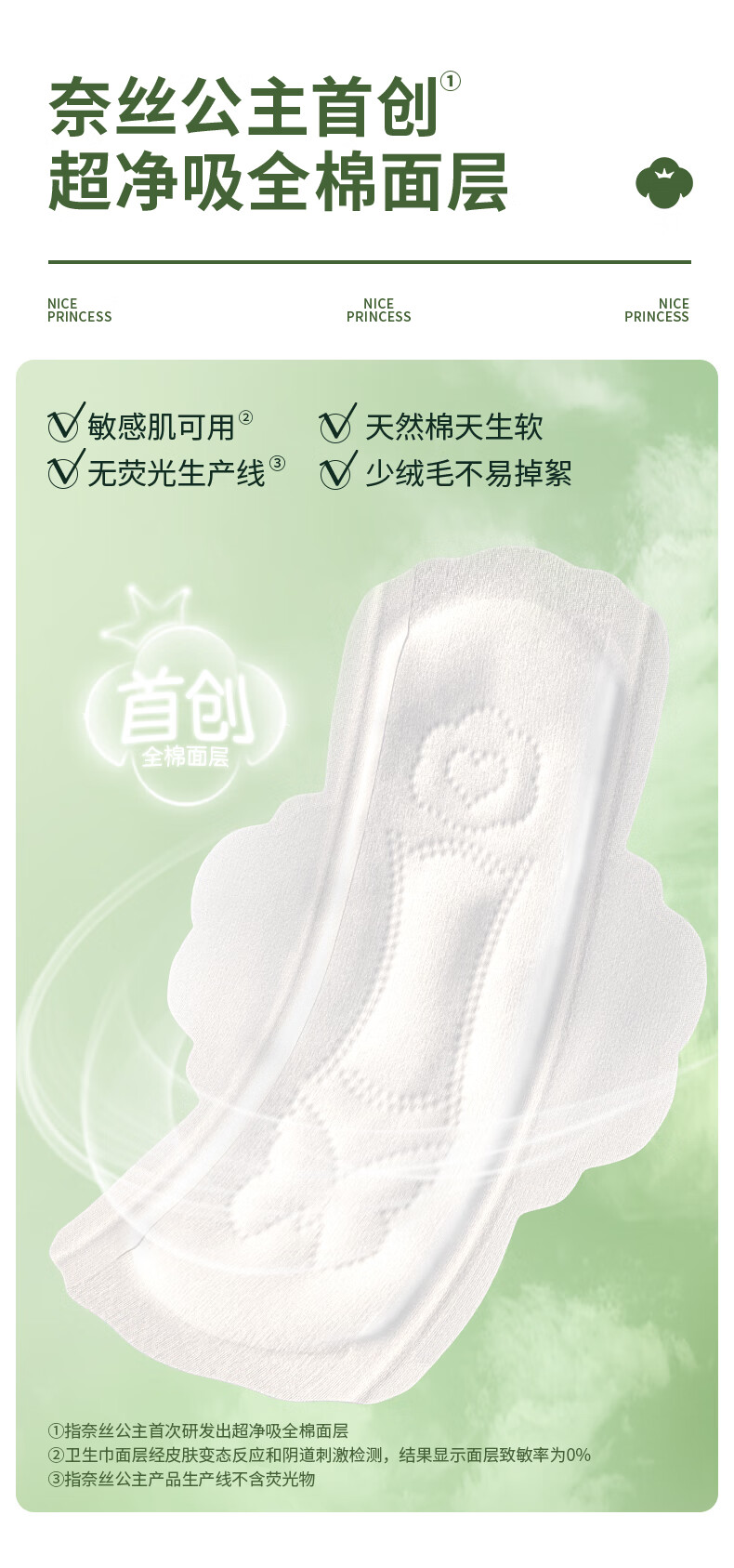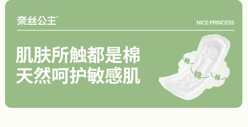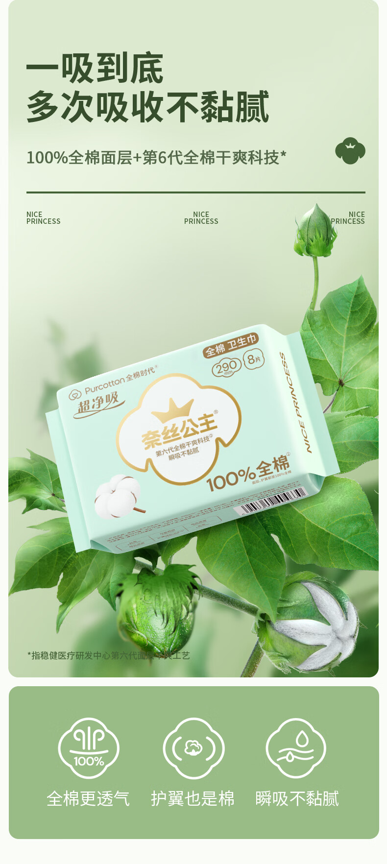 全棉时代奈丝公主超净吸系列亲肤超薄日夜两用卫生巾290MM,8片/袋(单位:袋) 水蓝色