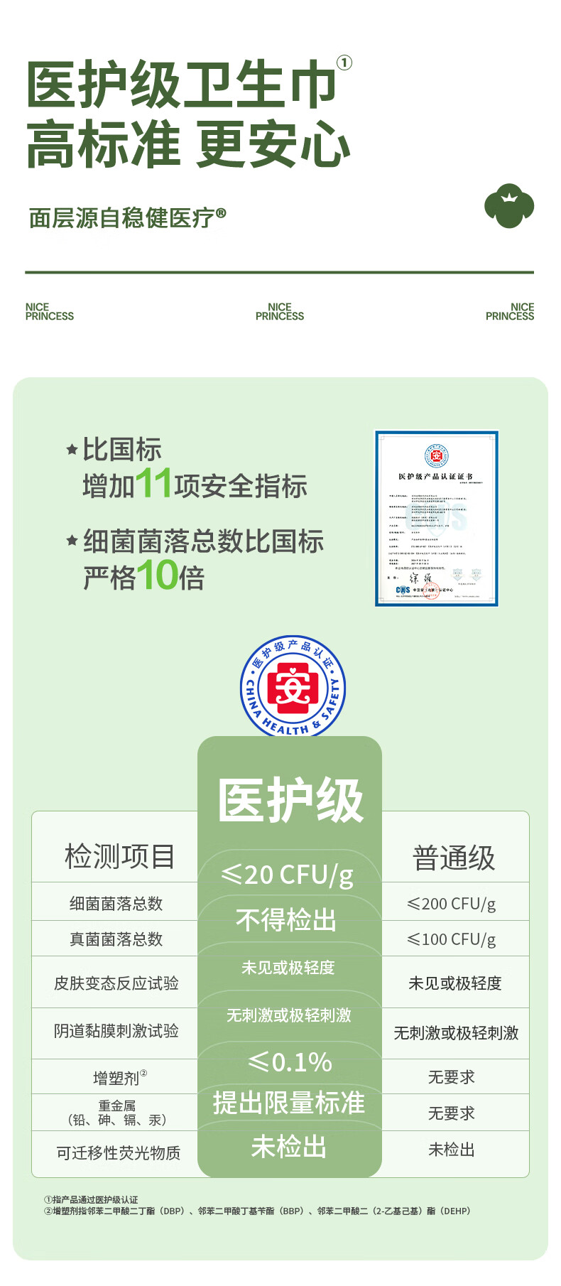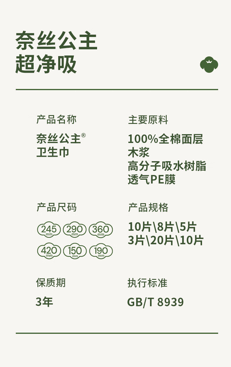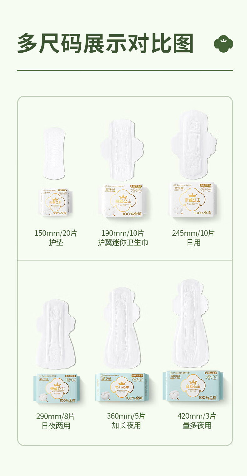 全棉时代奈丝公主超净吸系列亲肤超薄日夜两用卫生巾290MM,8片/袋(单位:袋) 水蓝色