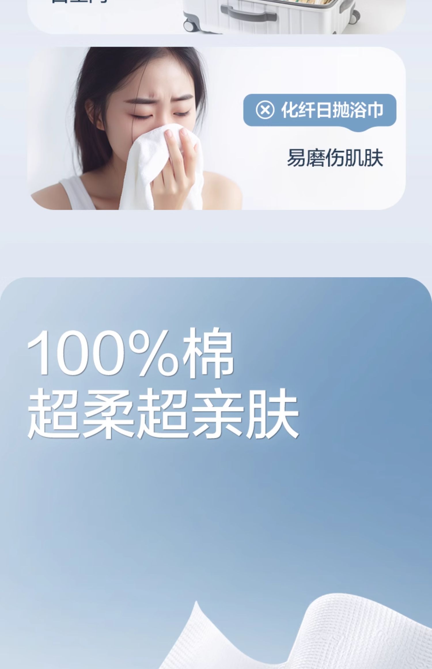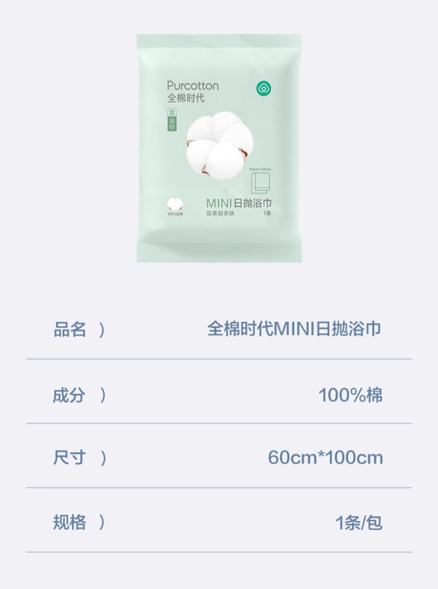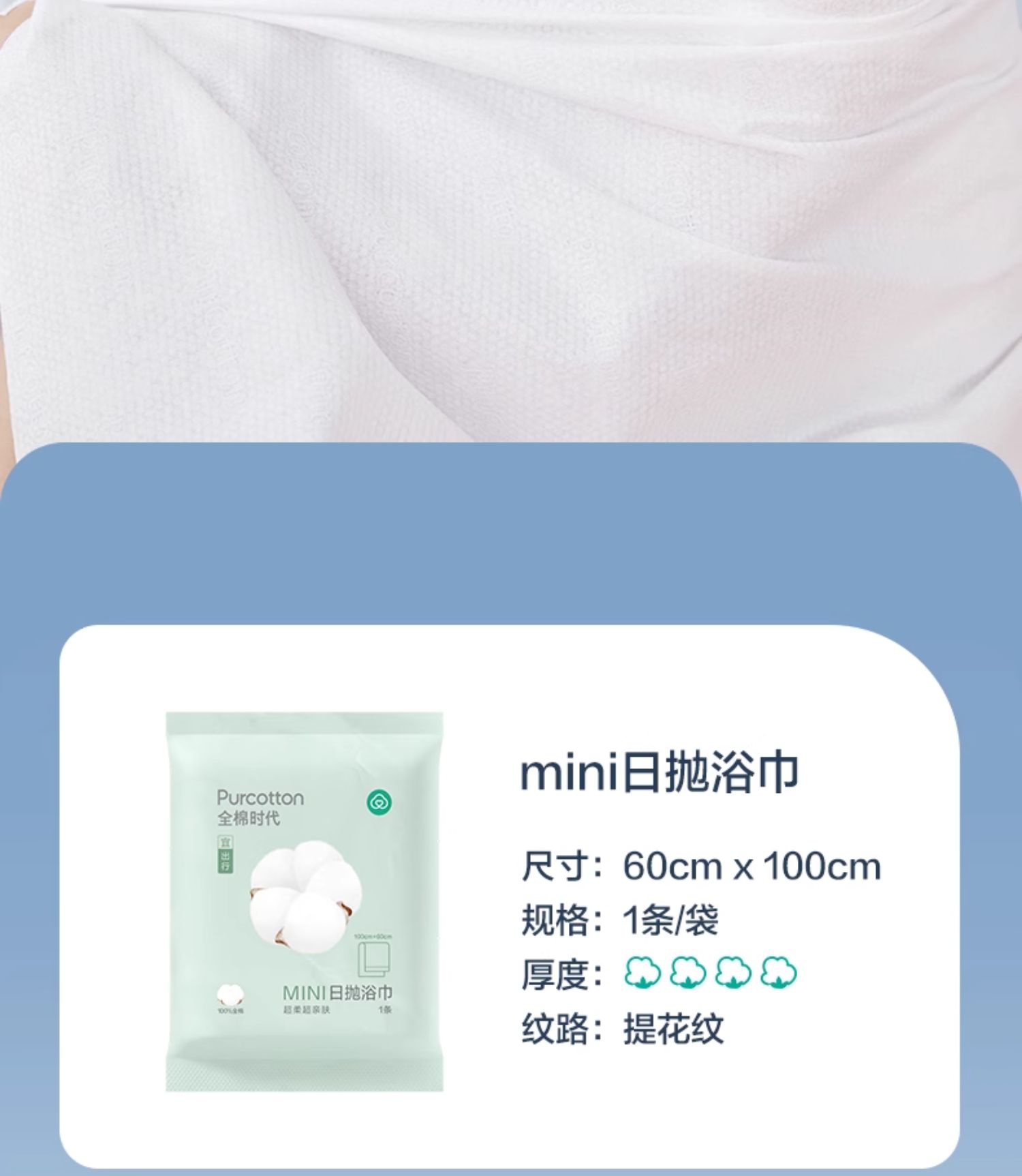 全棉时代一次性全棉浴巾Mini60x100cm,1条/袋(单位:袋) 婴儿蓝