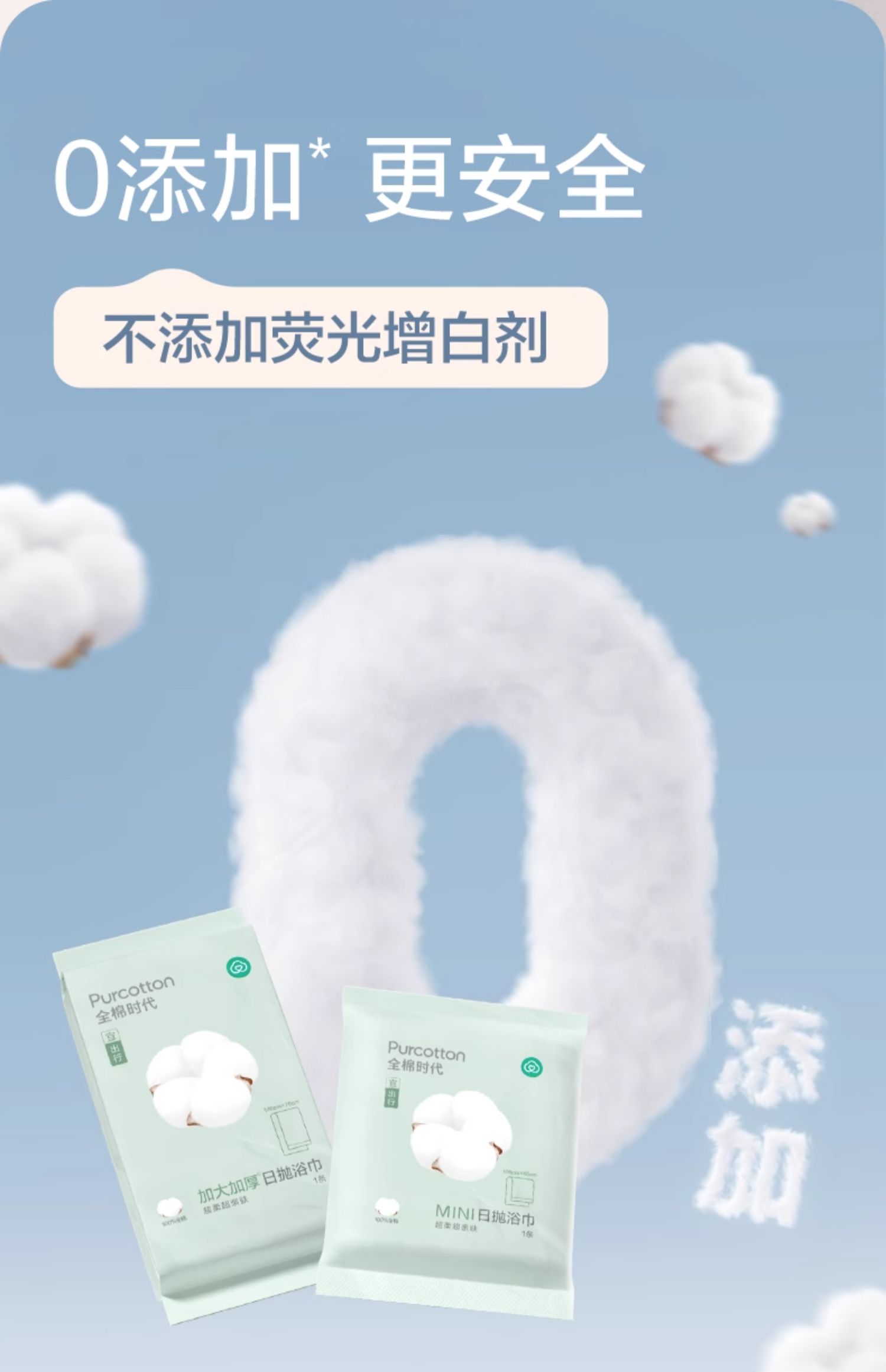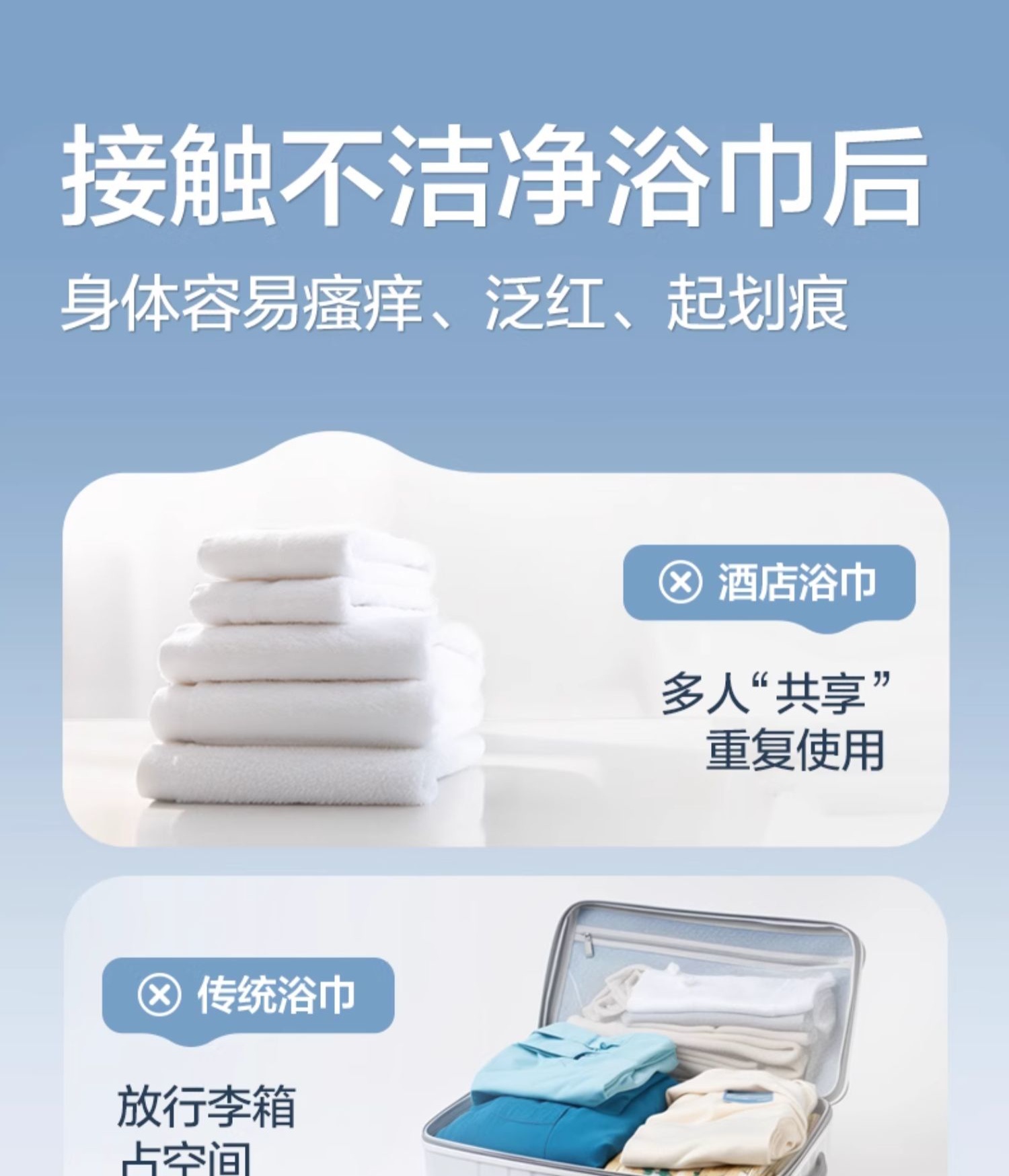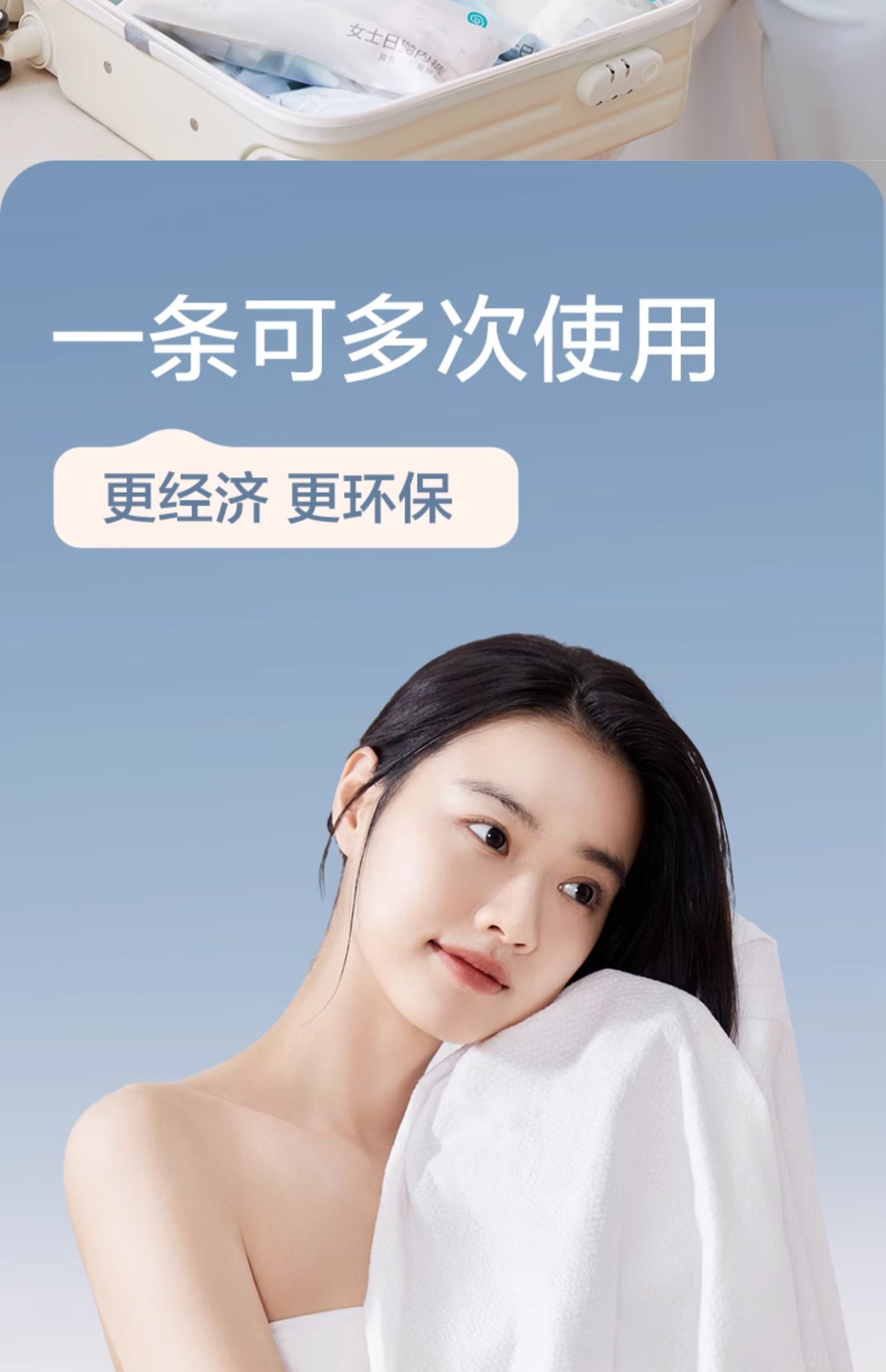 全棉时代一次性全棉浴巾Mini60x100cm,1条/袋(单位:袋) 婴儿蓝