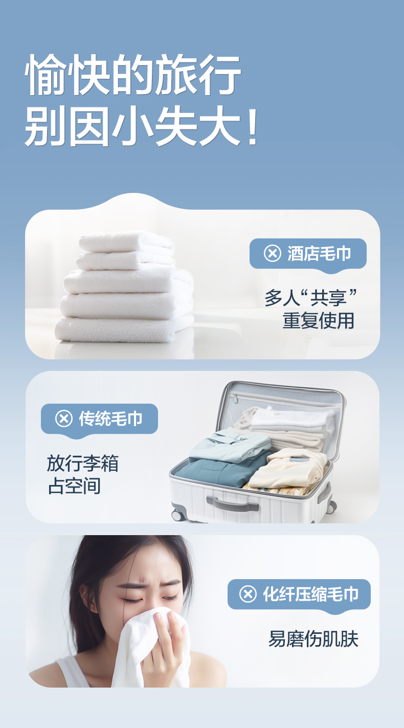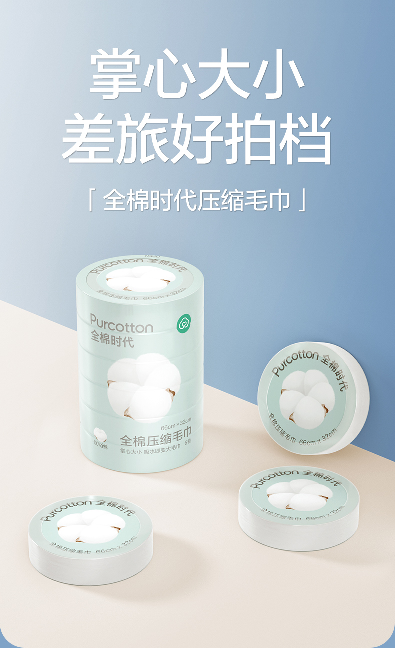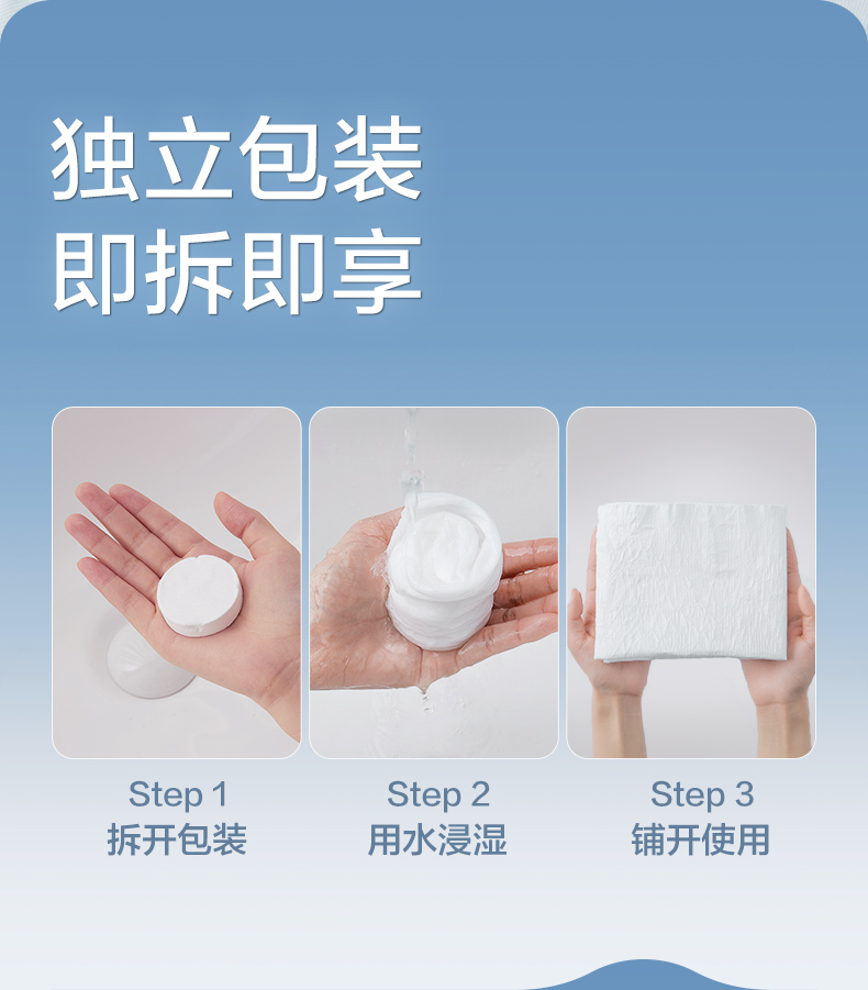 全棉时代全棉一次性压缩毛巾32x66cm,6个/条(单位:组) 婴儿蓝