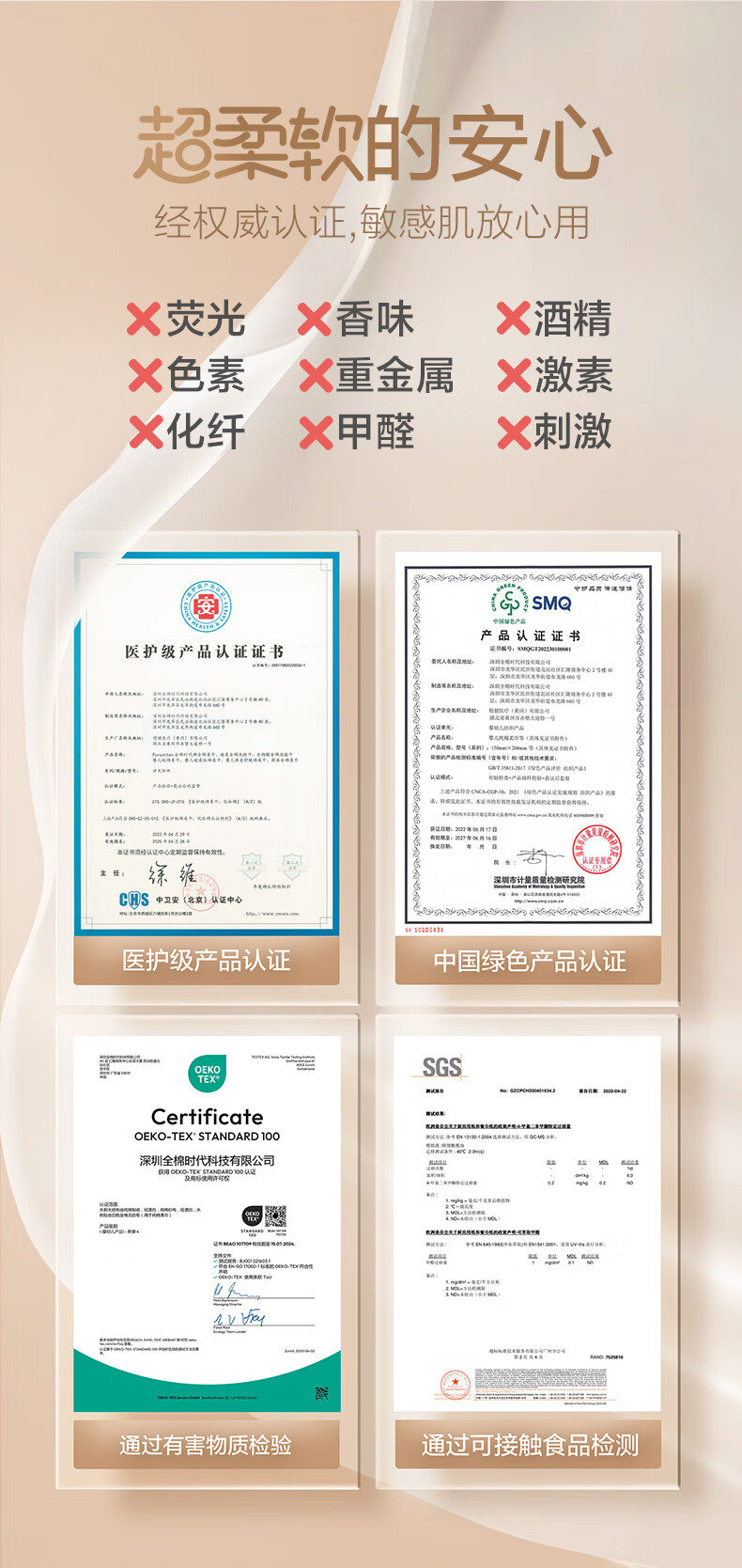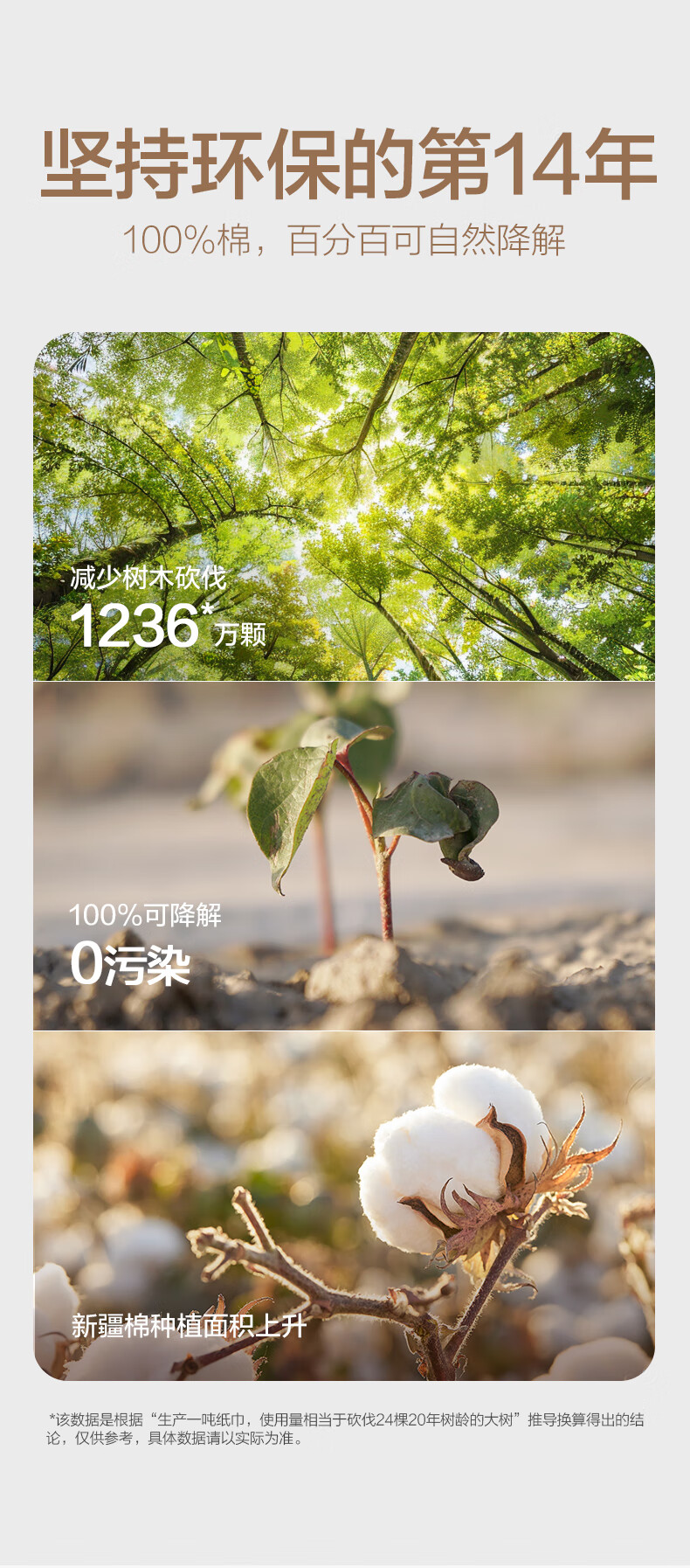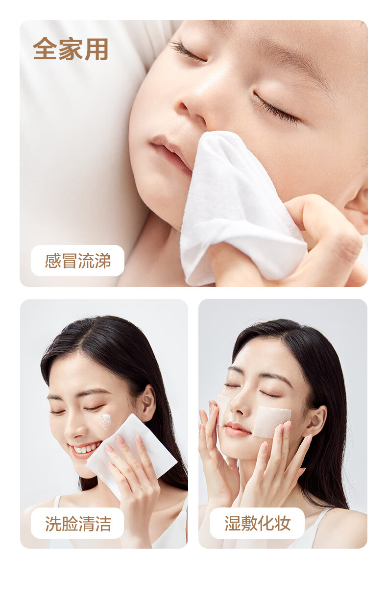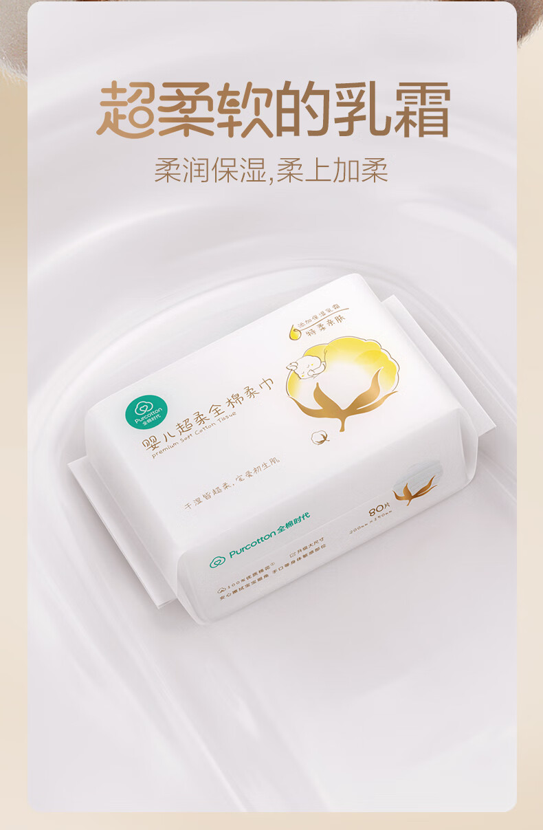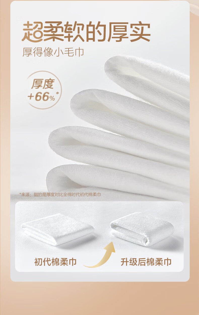 全棉时代婴儿超柔全棉柔巾50gsm平纹 200×150mm,80片/包,3包/袋(单位:袋) 象牙色