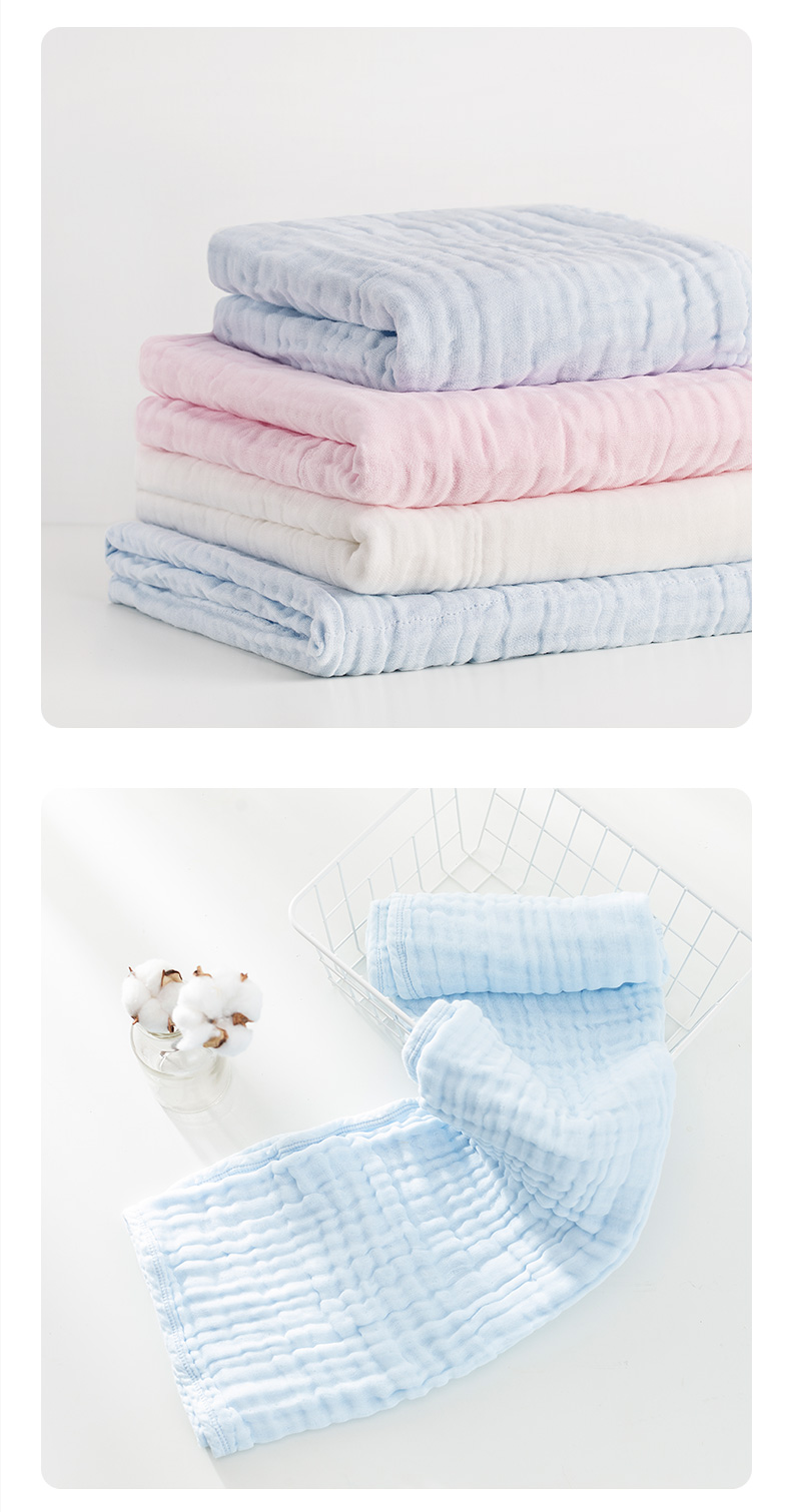 全棉时代蓝色包边款水洗纱布浴巾80x140-6P,1条/盒(水洗后成型尺寸)(单位:盒) 本白色