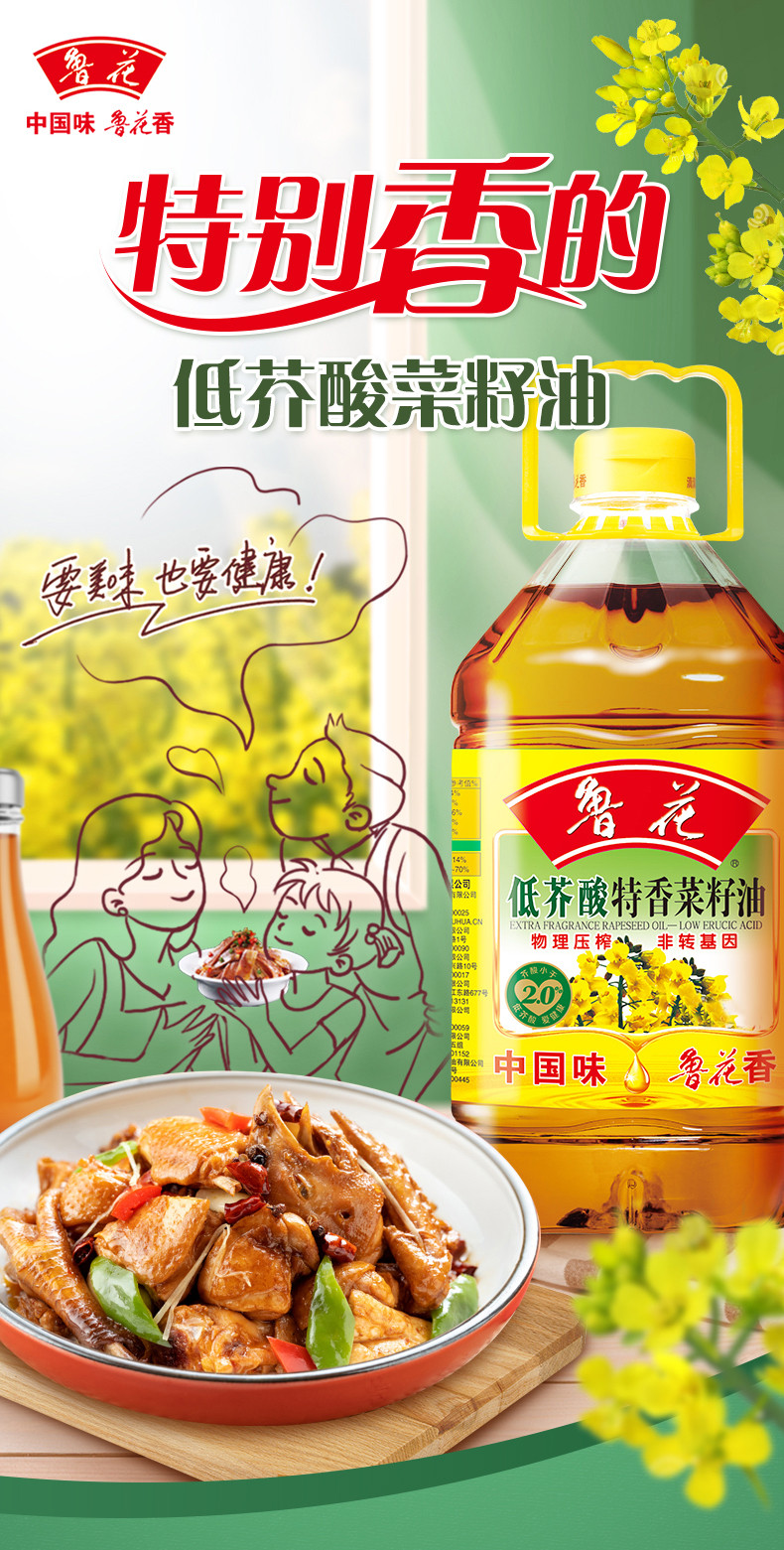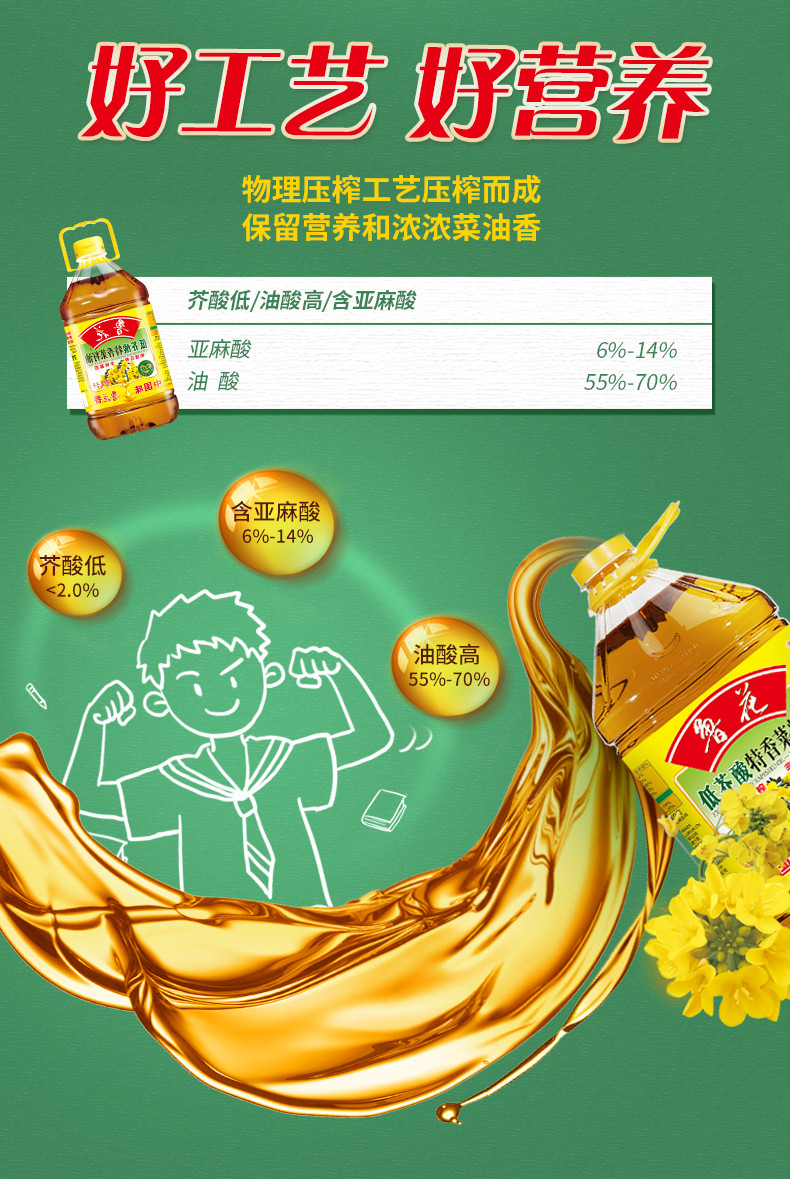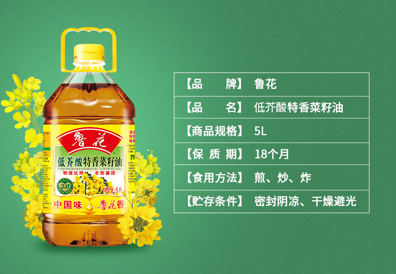 鲁花 低芥酸特香菜籽油5L非转基因物理压榨食用油(单位:桶) 香槟金