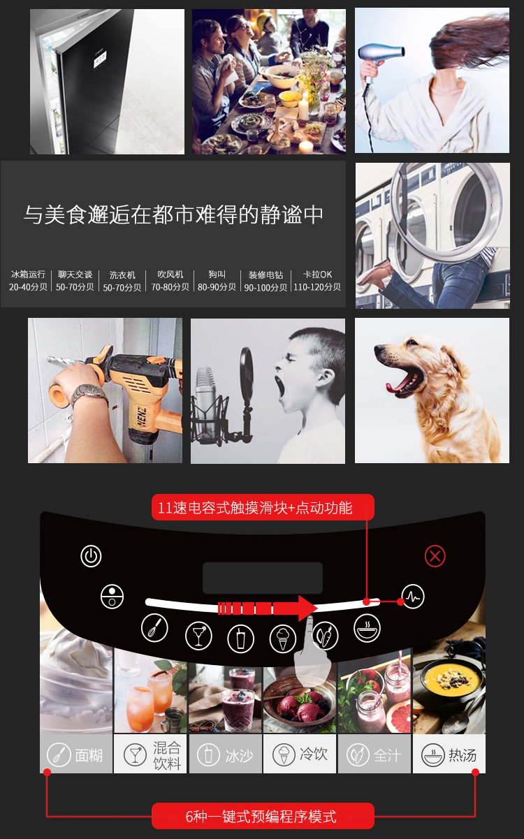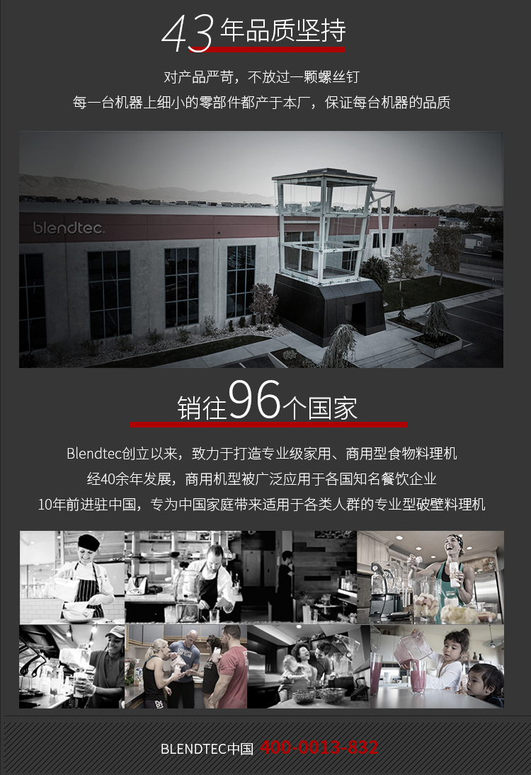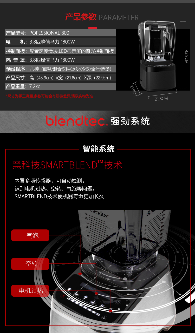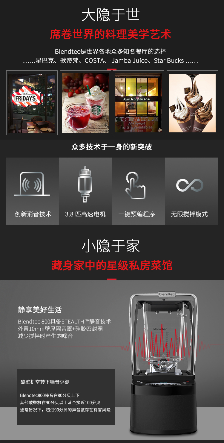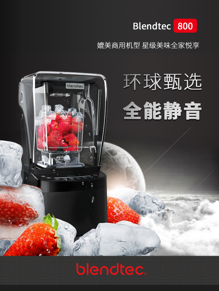 柏兰德(Blendtec)美国原装进口破壁机家用隔音降噪物理加热自清洁多功能料理机800静音款 黑色