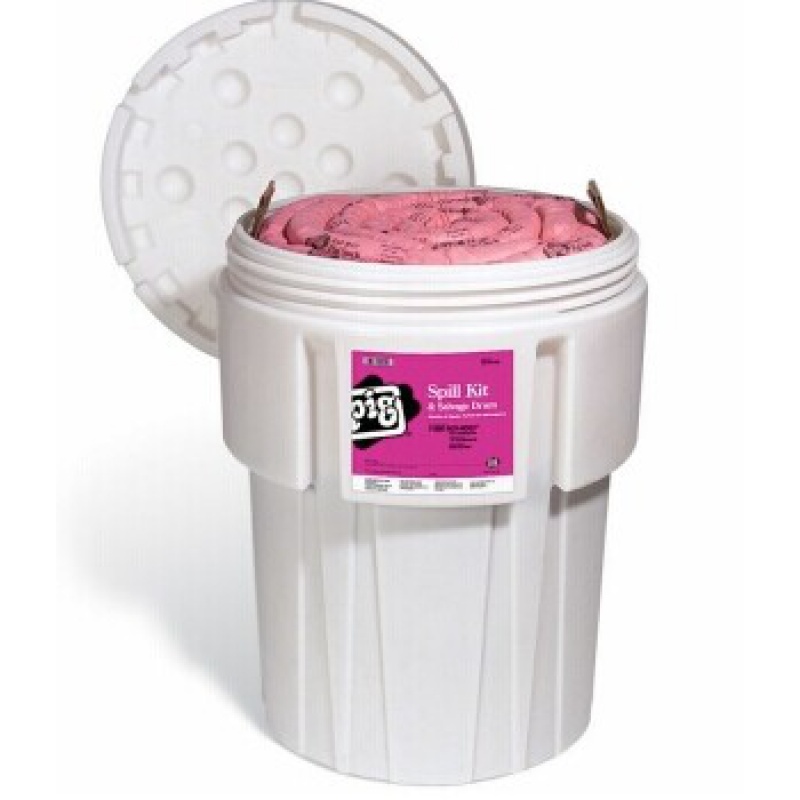 用PIG® 防化学防溢组件吸收酸和碱——评价高的泄漏应急套桶