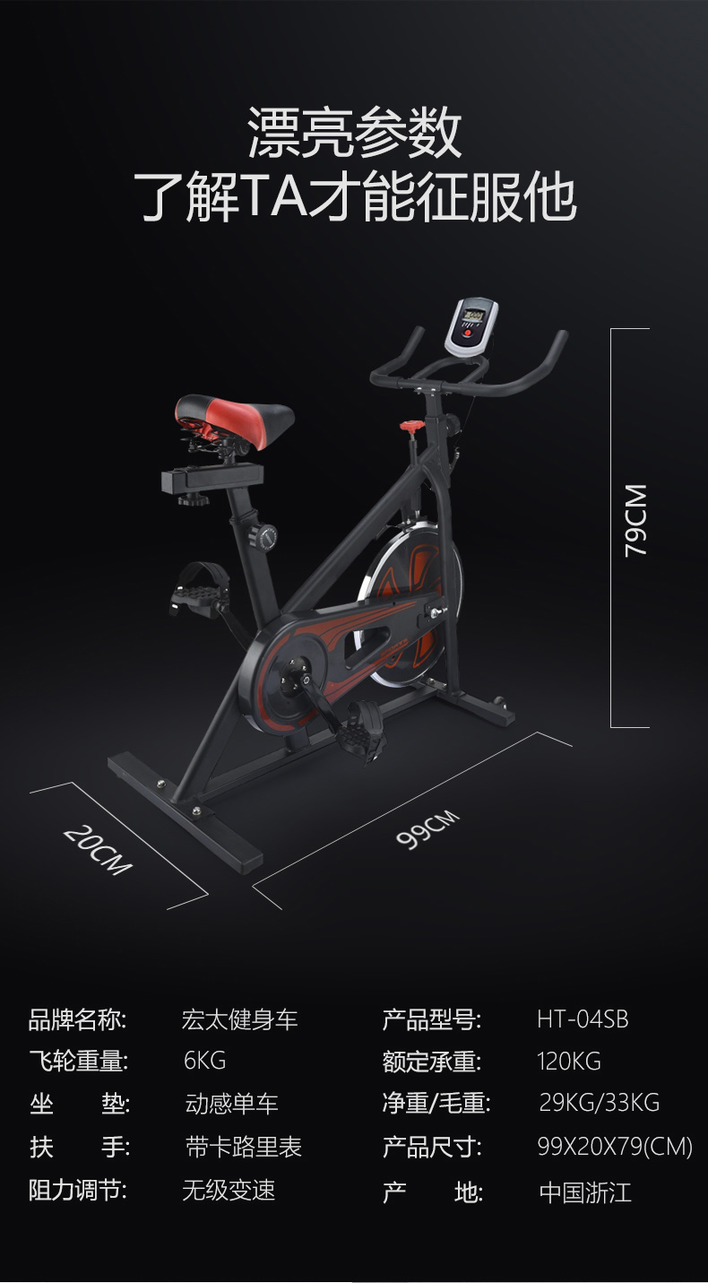 HTASK宏太家用磁控静音健身单车动感单车 黑色