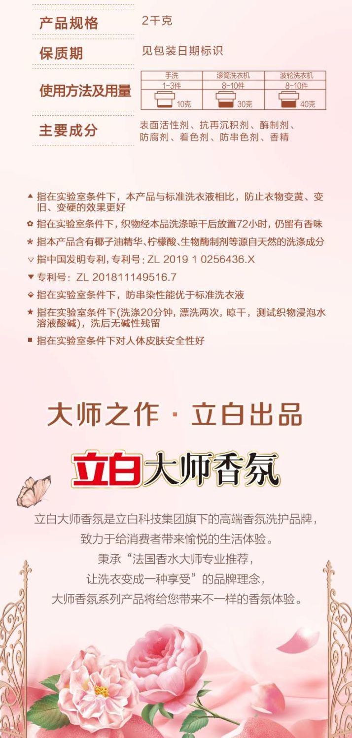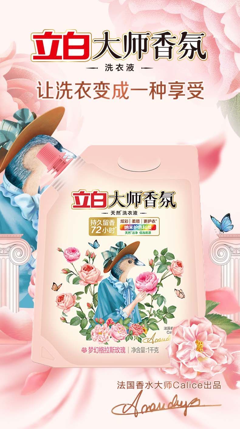 立白 大师香氛天然洗衣液(带导流嘴) 梦幻格拉斯玫瑰 1kg 白色(单位:袋)