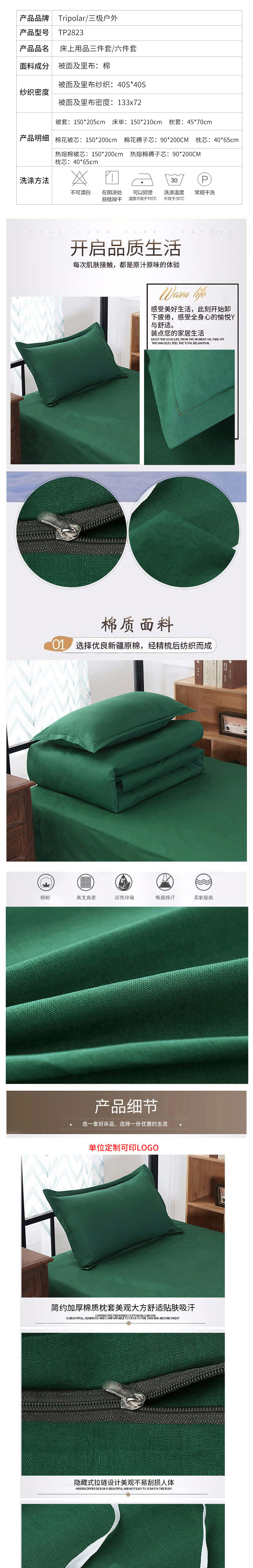 三极 TP2823 宿舍单人橄榄绿全棉 六件套 40纱支 热熔内胆