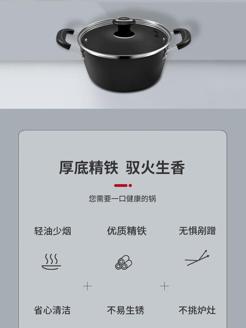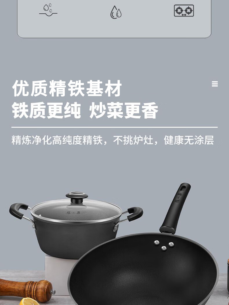 张小泉精铁雪波纹锅具二件套C35422000(单位:套) 黑色