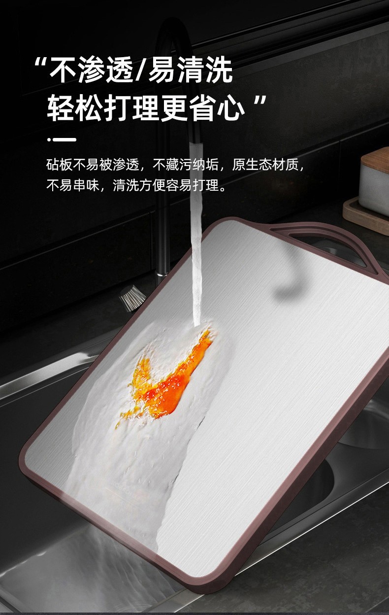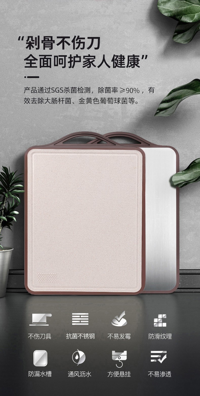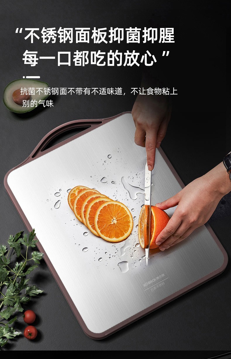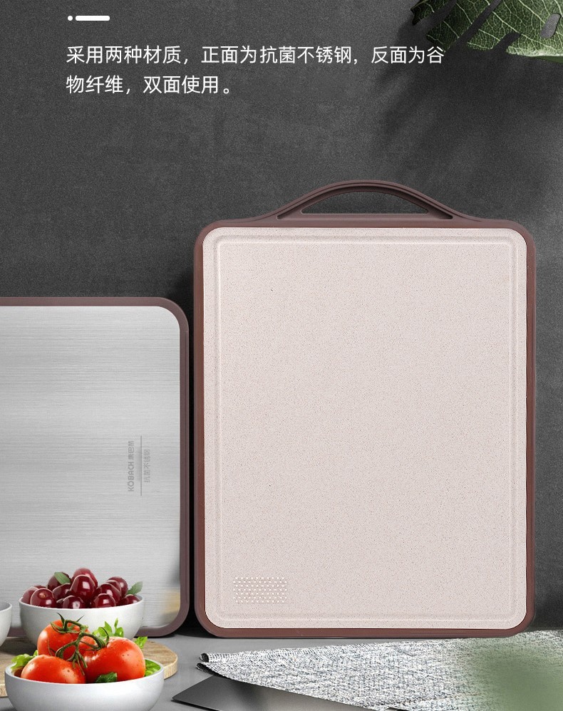 康巴赫(KBH)抗菌不锈钢双面菜板KCB30A3 【14050127】(单位:个) 不锈钢色