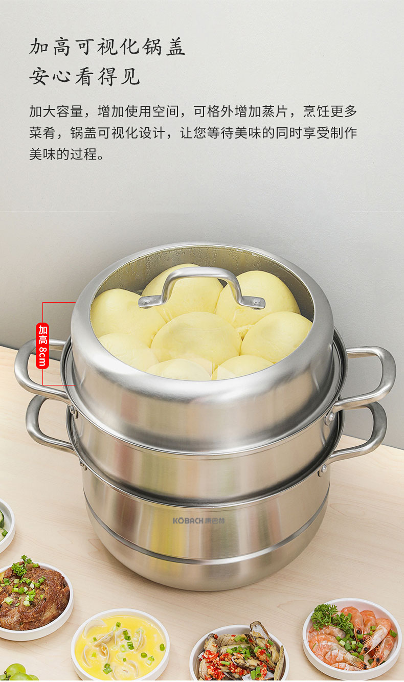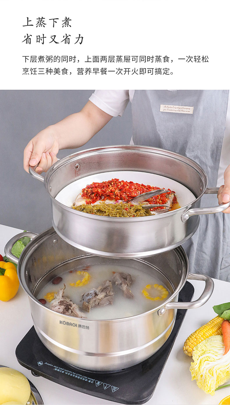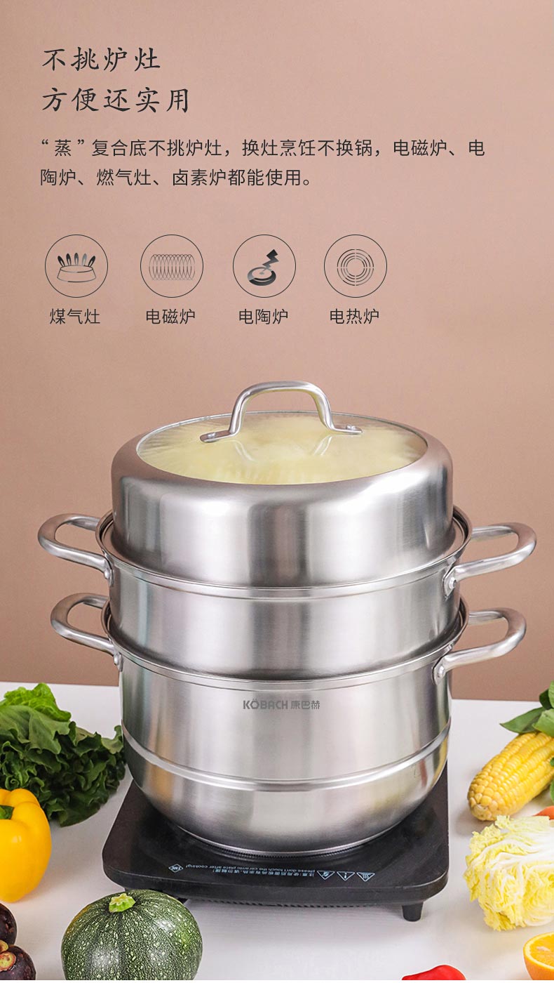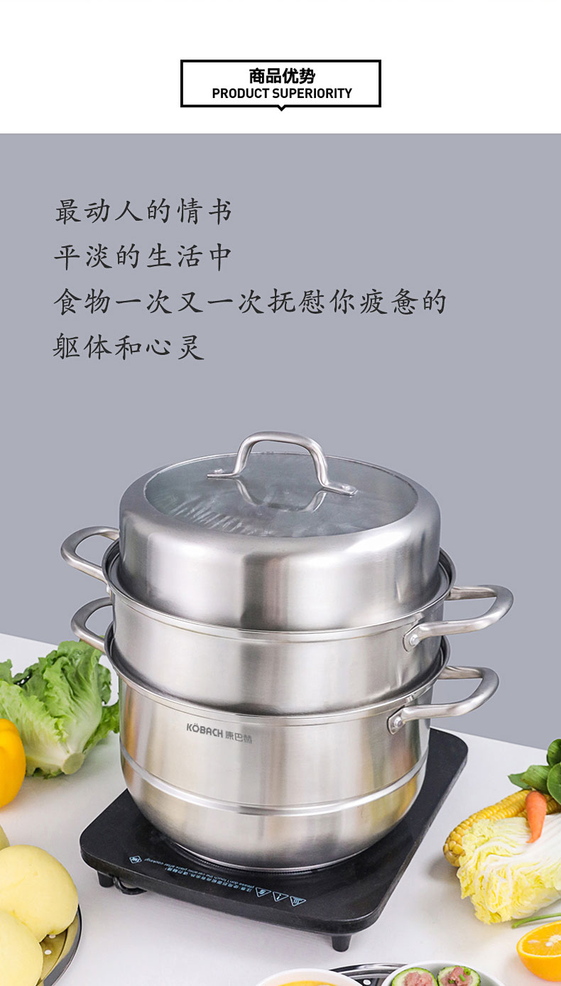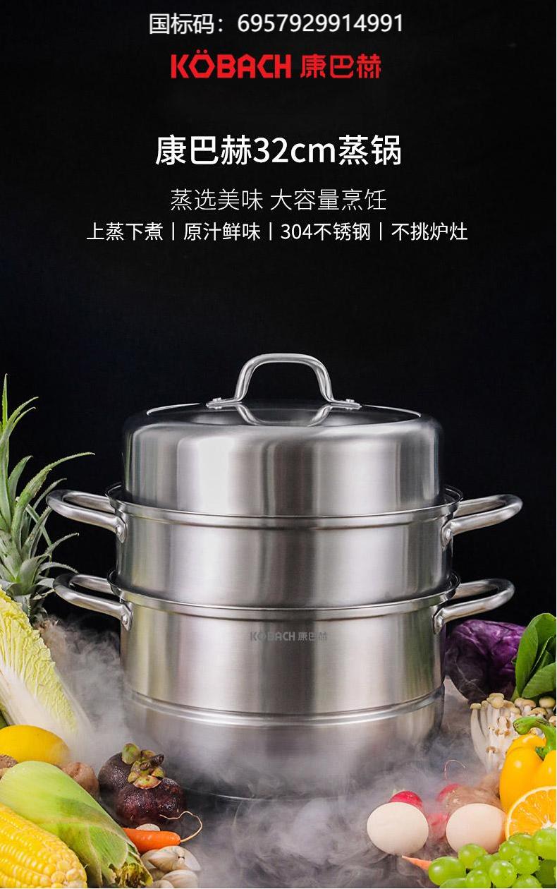 康巴赫(KBH)304不锈钢多功能家用三层蒸锅 32cm KBH32TB1【14050318】(单位:个) 不锈钢色