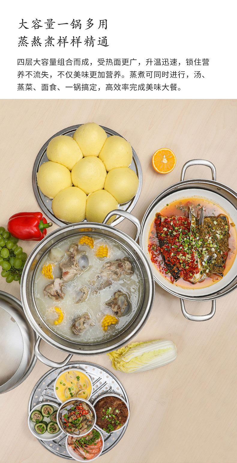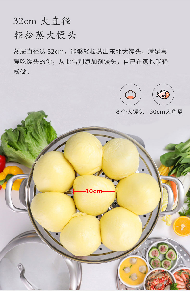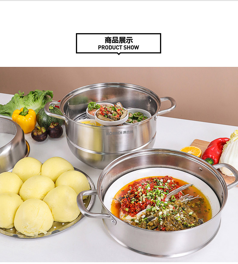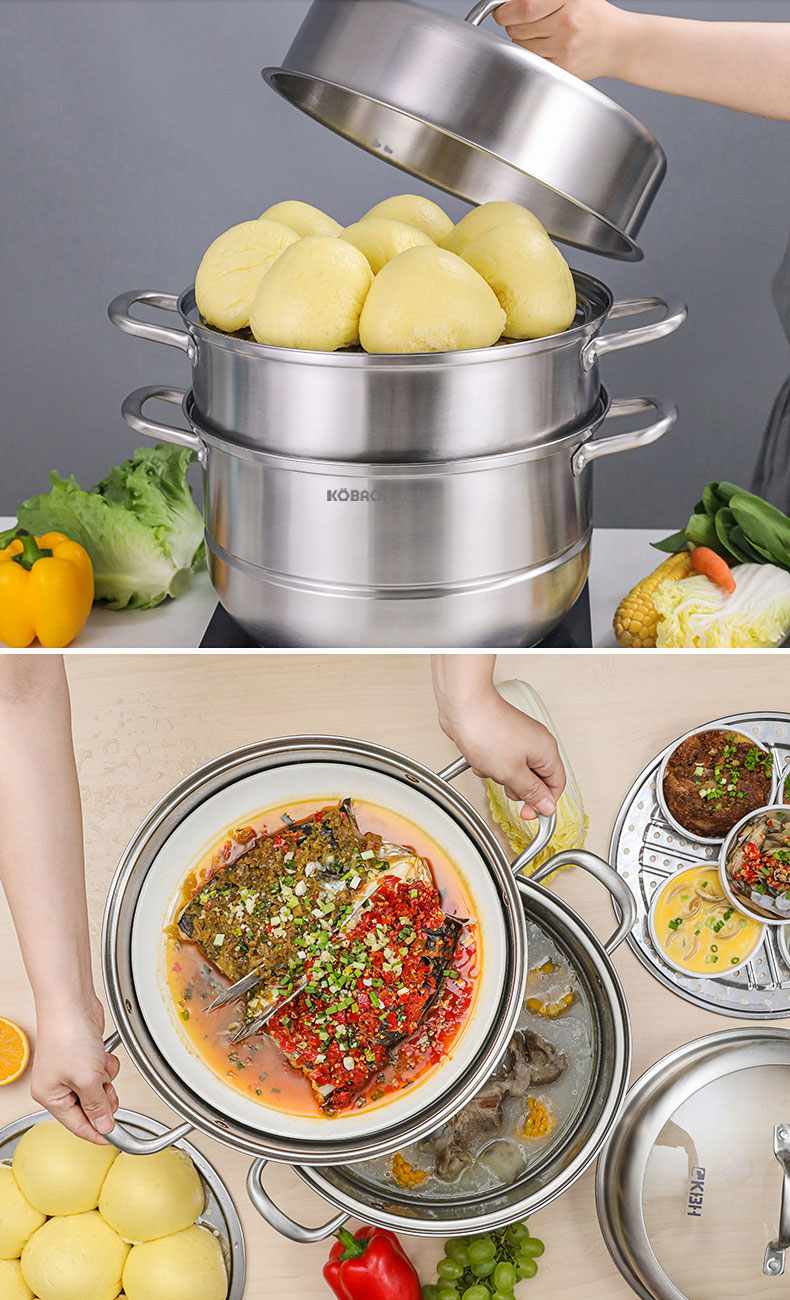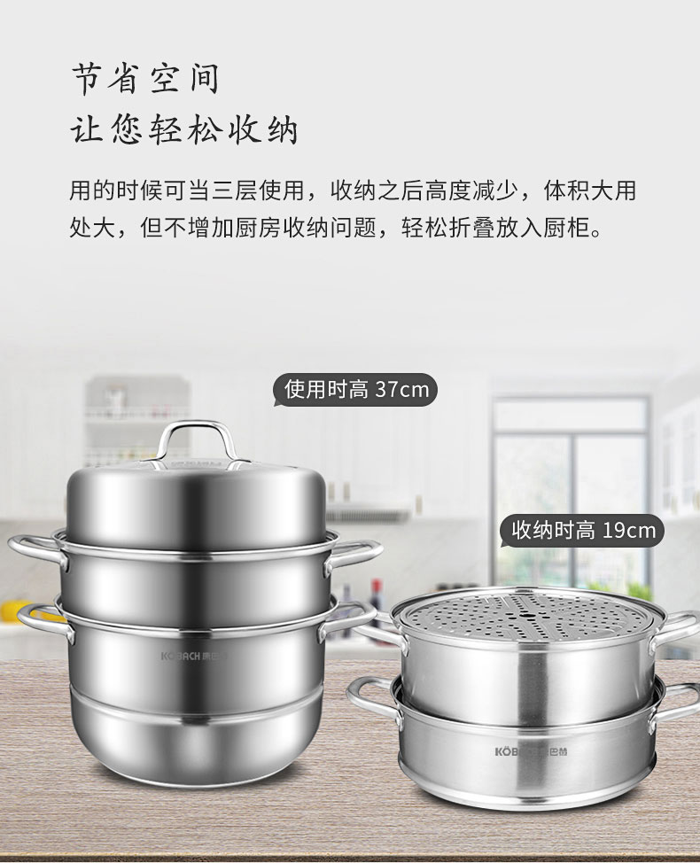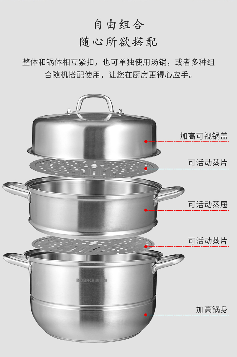 康巴赫(KBH)304不锈钢多功能家用三层蒸锅 32cm KBH32TB1【14050318】(单位:个) 不锈钢色