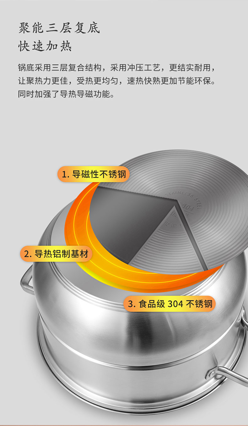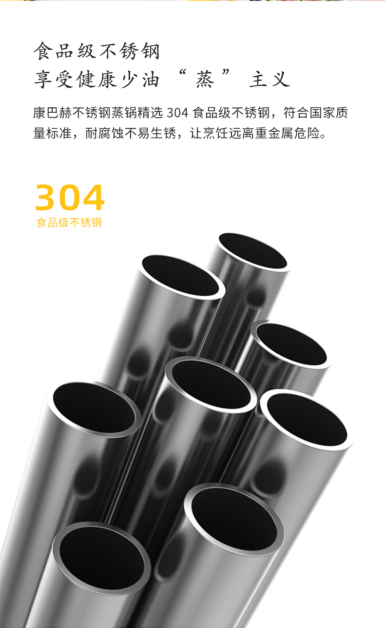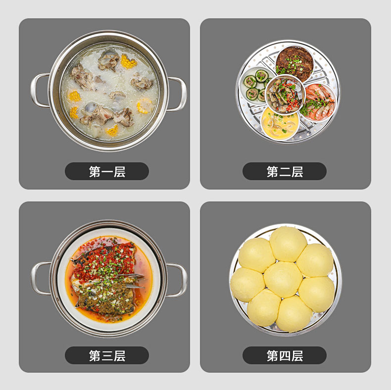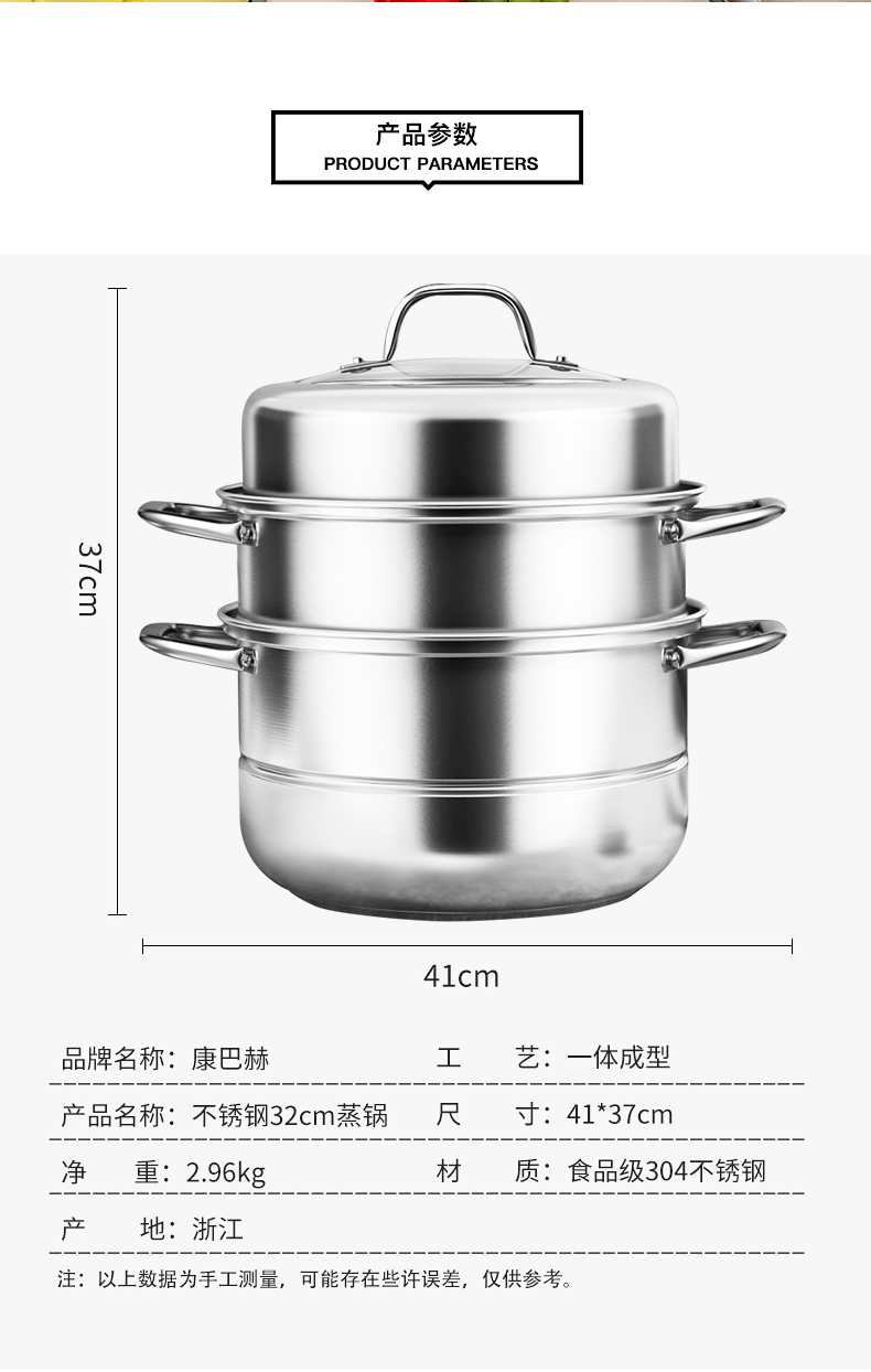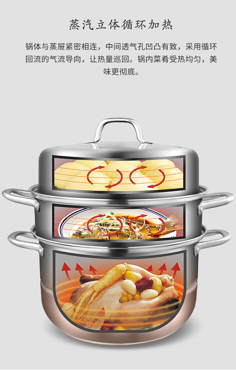 康巴赫(KBH)304不锈钢多功能家用三层蒸锅 32cm KBH32TB1【14050318】(单位:个) 不锈钢色