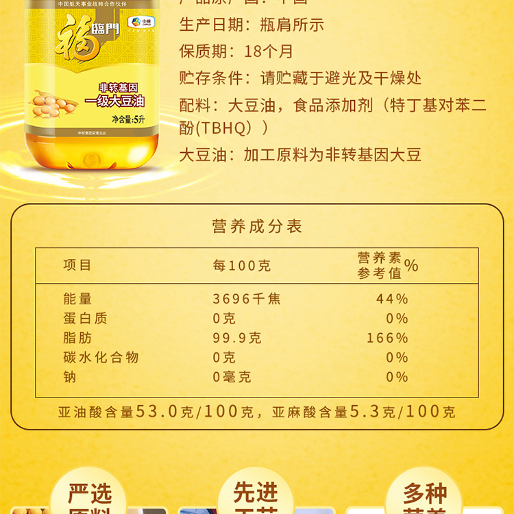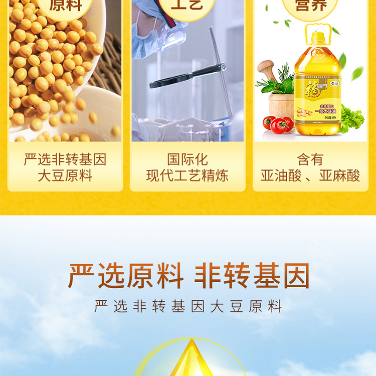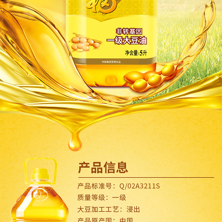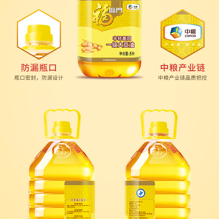 福临门非转基因一级大豆油5L 黄色