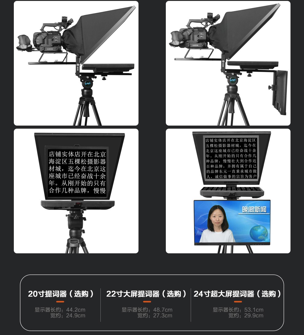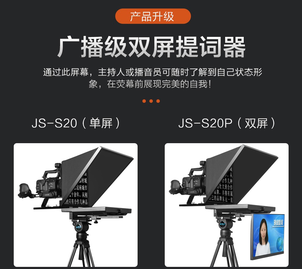 嘉视影JSS20提词器大屏幕广播级单屏双屏单反摄像机采访户外拍便携提词器演播室演讲会议舞台歌词提字器 JS-S22(22寸单屏提词器) 黑色