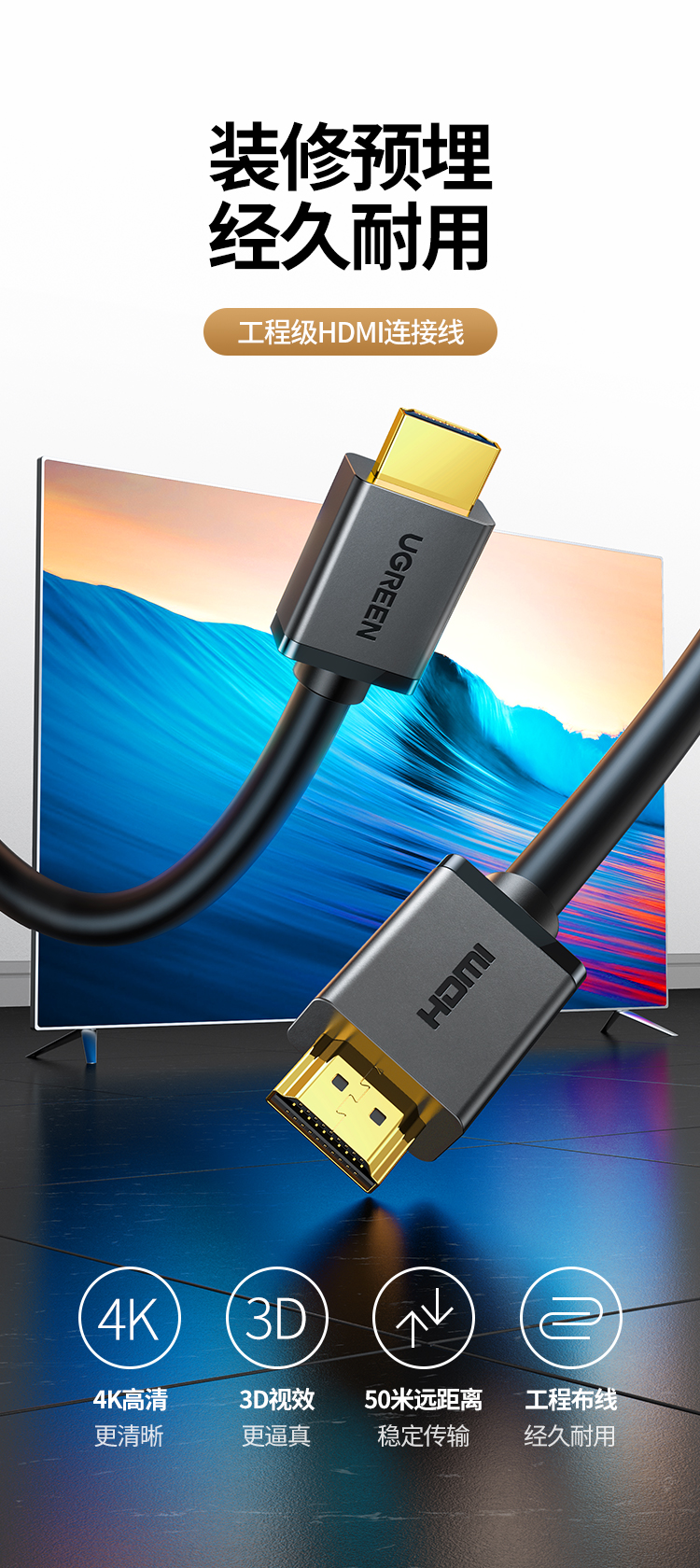 绿联(UGREEN) 10110 10米 绿联数据连接线 黑色(单位:条)