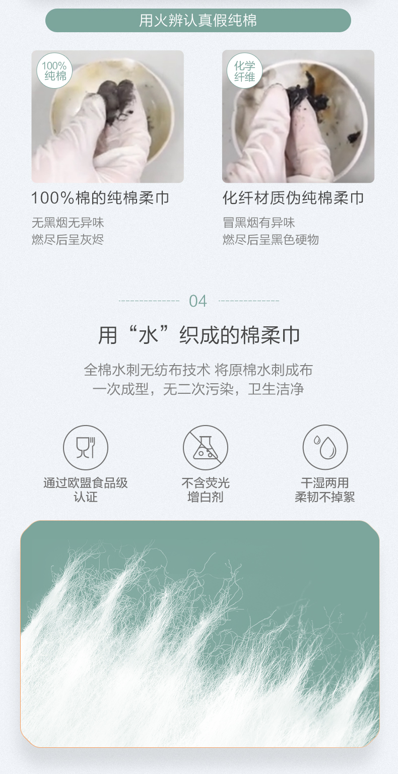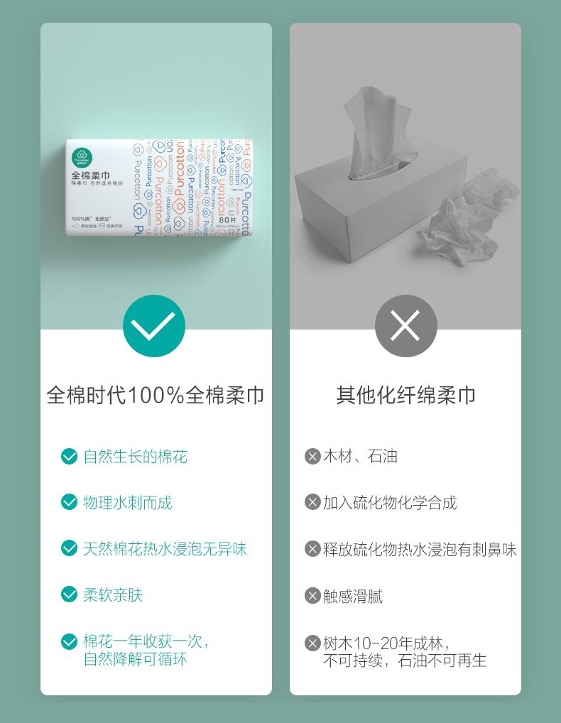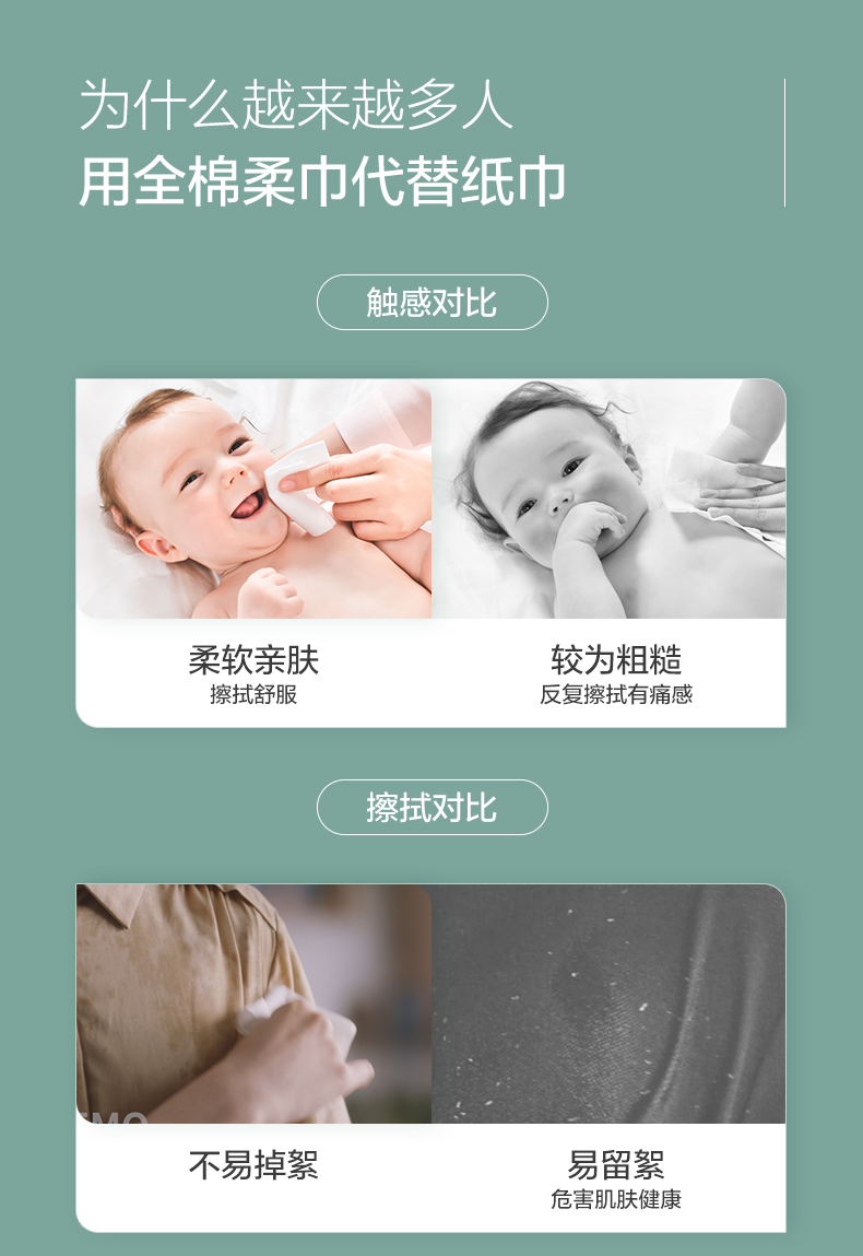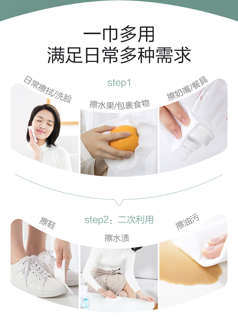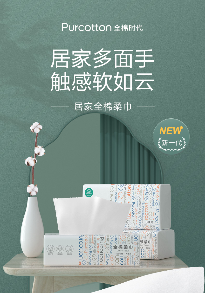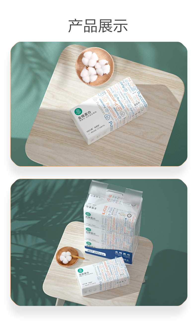 全棉时代100%纯棉一次性洗脸巾 干湿两用棉柔巾20×20CM 80抽*3包(单位:提) 混色