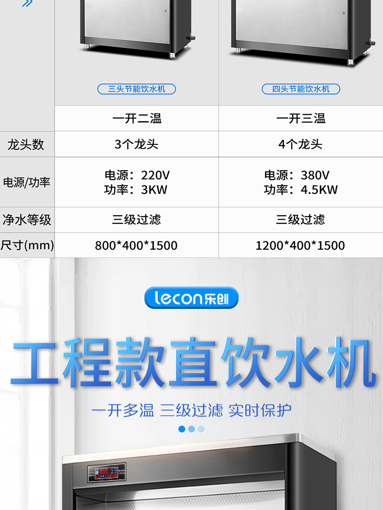 乐创(lecon)商用开水器 学校公司工厂大型不锈钢饮水机 柜式一开一温 LC-J-ZY01 黑色