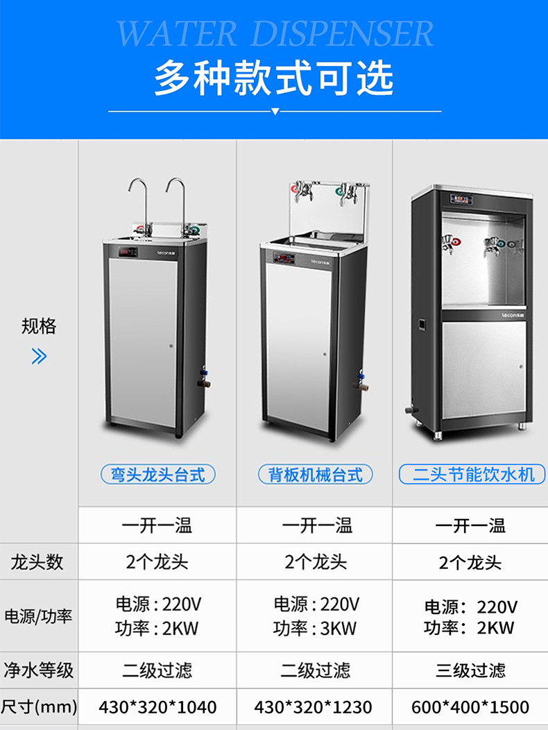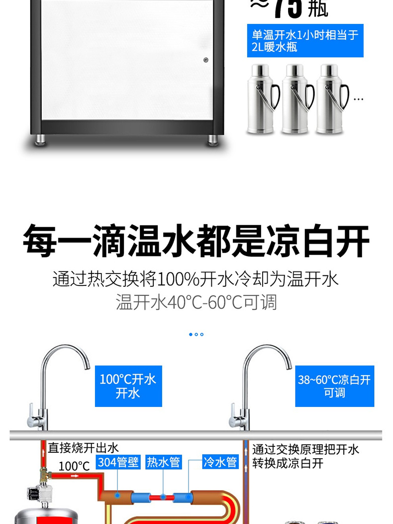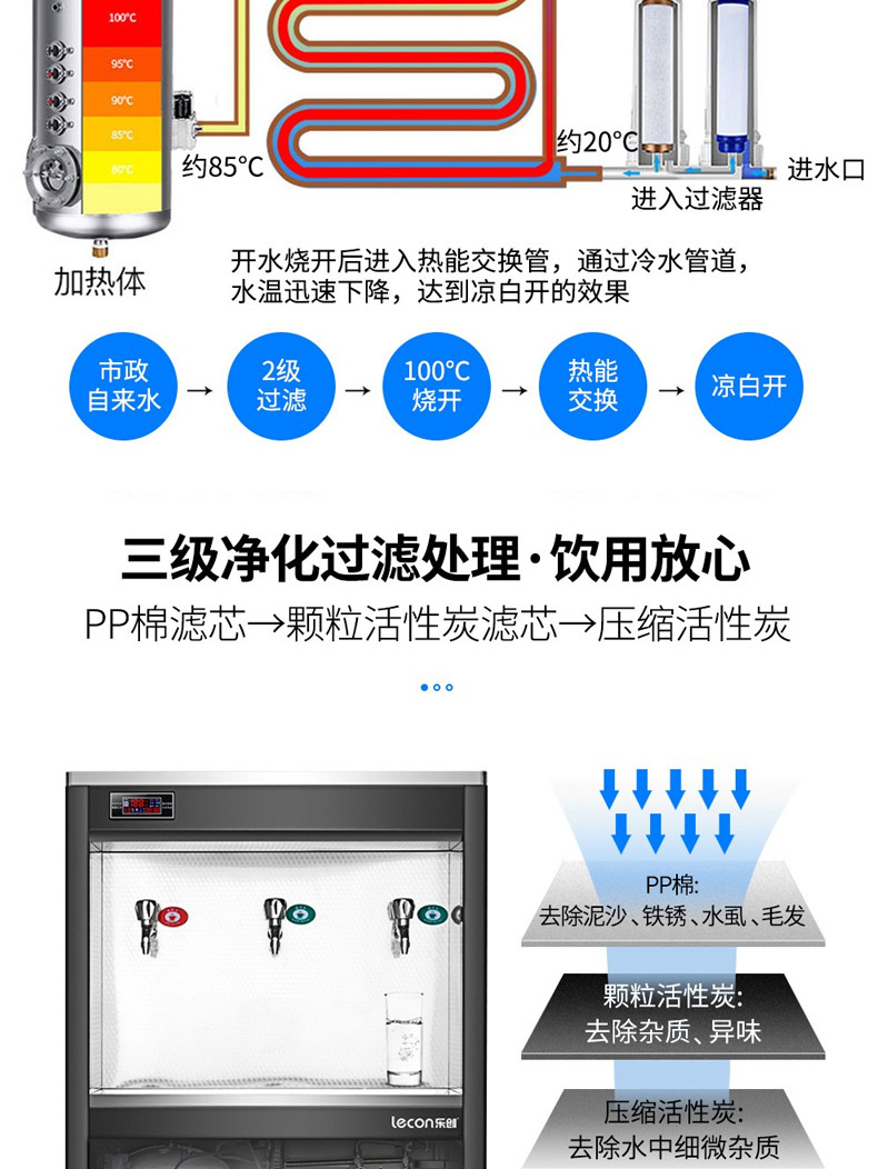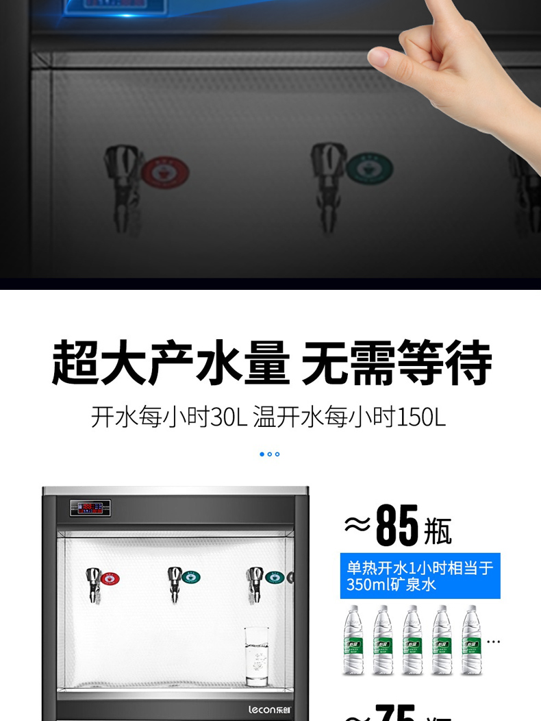 乐创(lecon)商用开水器 学校公司工厂大型不锈钢饮水机 台式一开二温 LC-J-ZY01 黑色