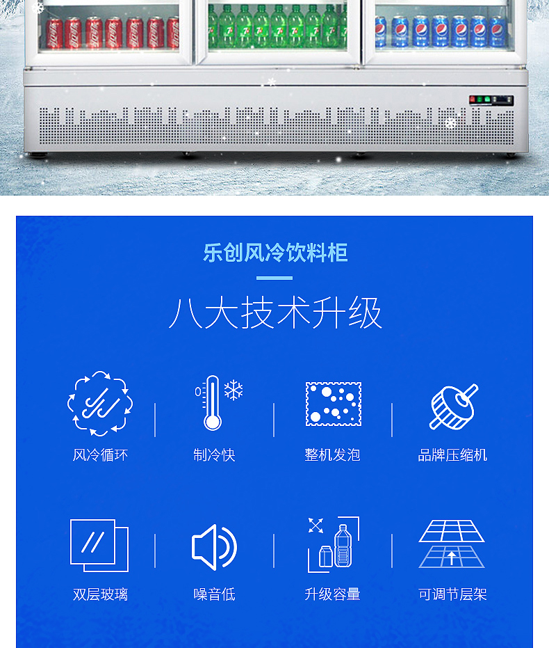 乐创(lecon)展示柜冷藏 饮料柜 下置大容积立式双门嵌入式便利店果蔬水果保鲜柜 LC-J-ZSC02 白色