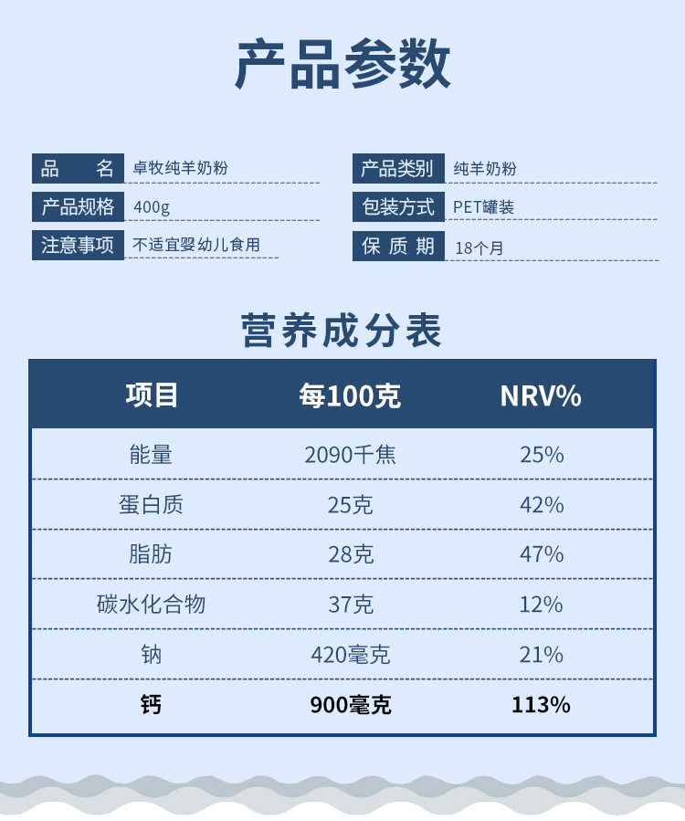 卓牧纯羊奶粉400g(单位:罐) 白色