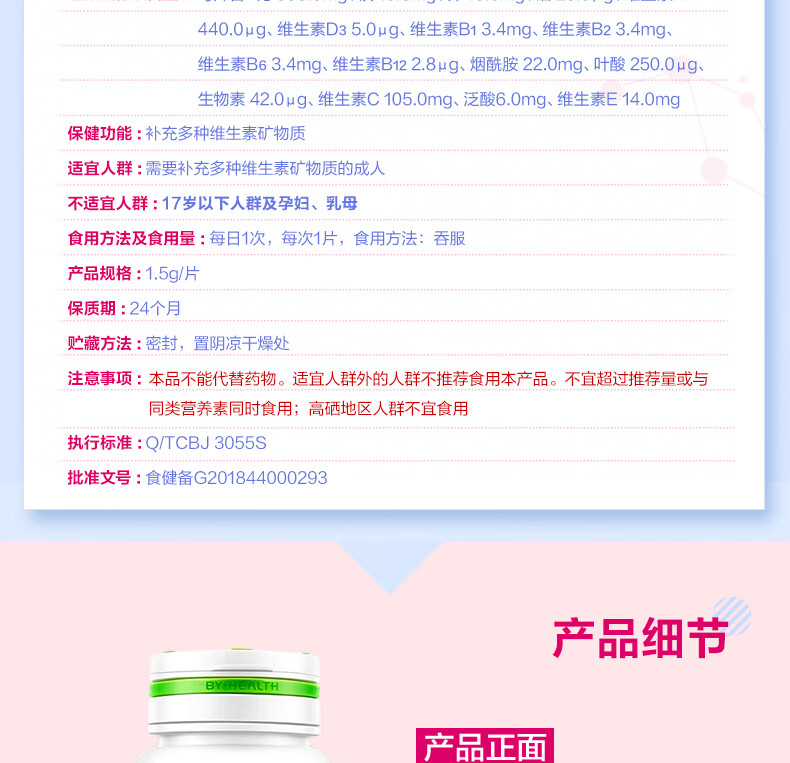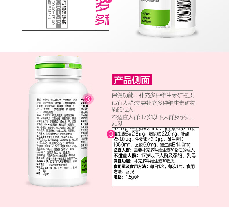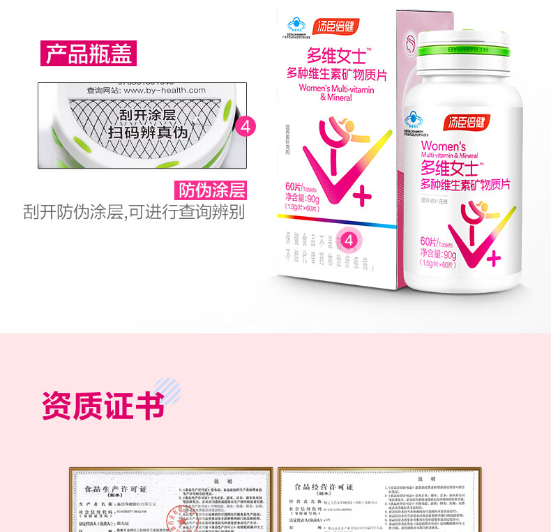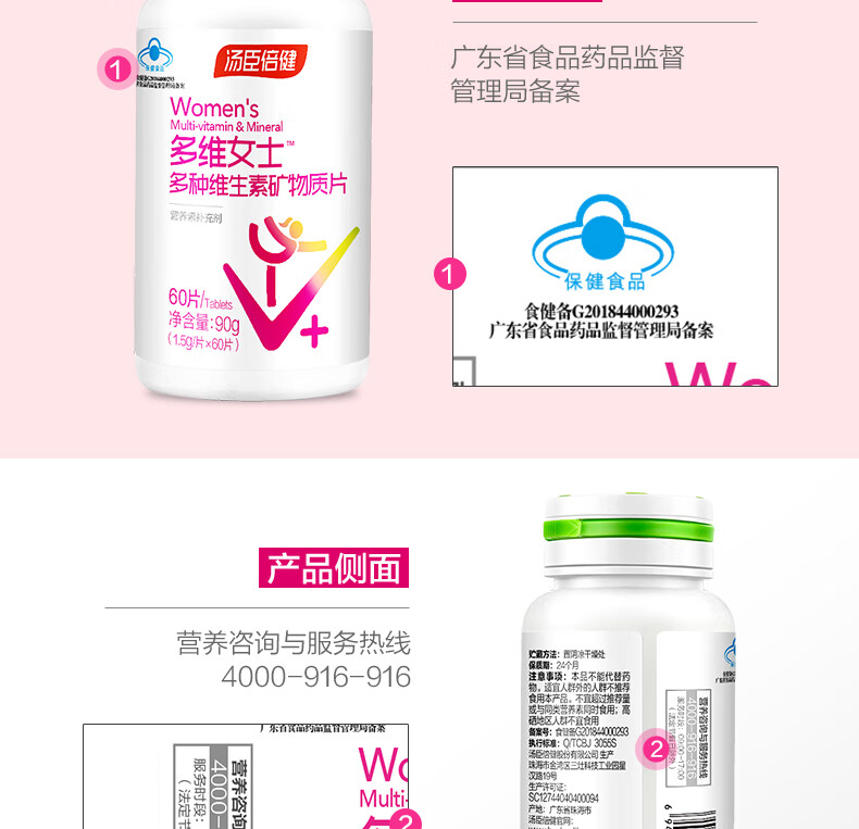 汤臣倍健多维女士多种维生素矿物质片优惠装(60片×2瓶) 粉色