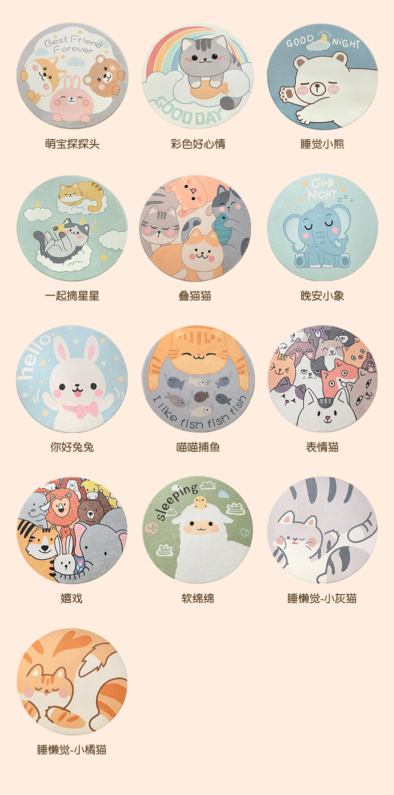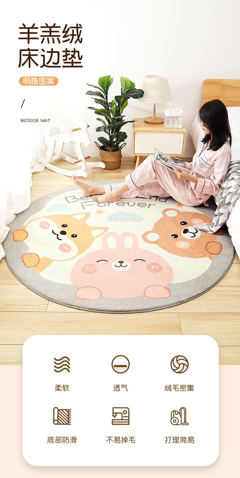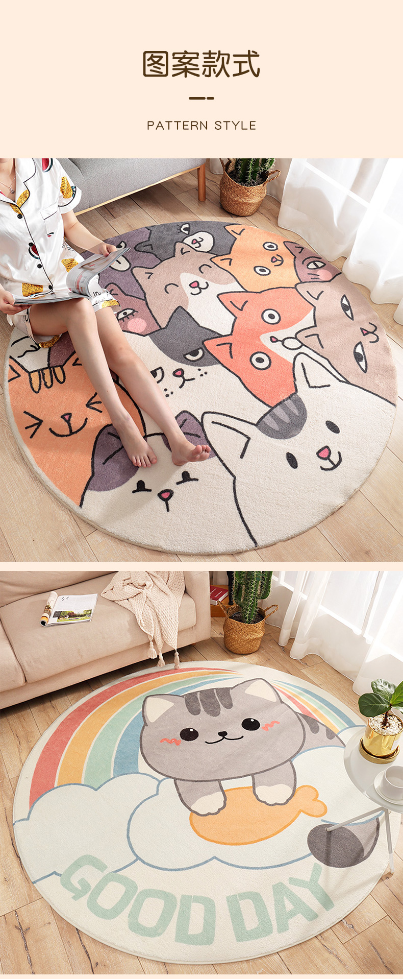 大江地垫地毯羊羔绒室内防滑垫-嬉戏(单位:张) 100*100cm