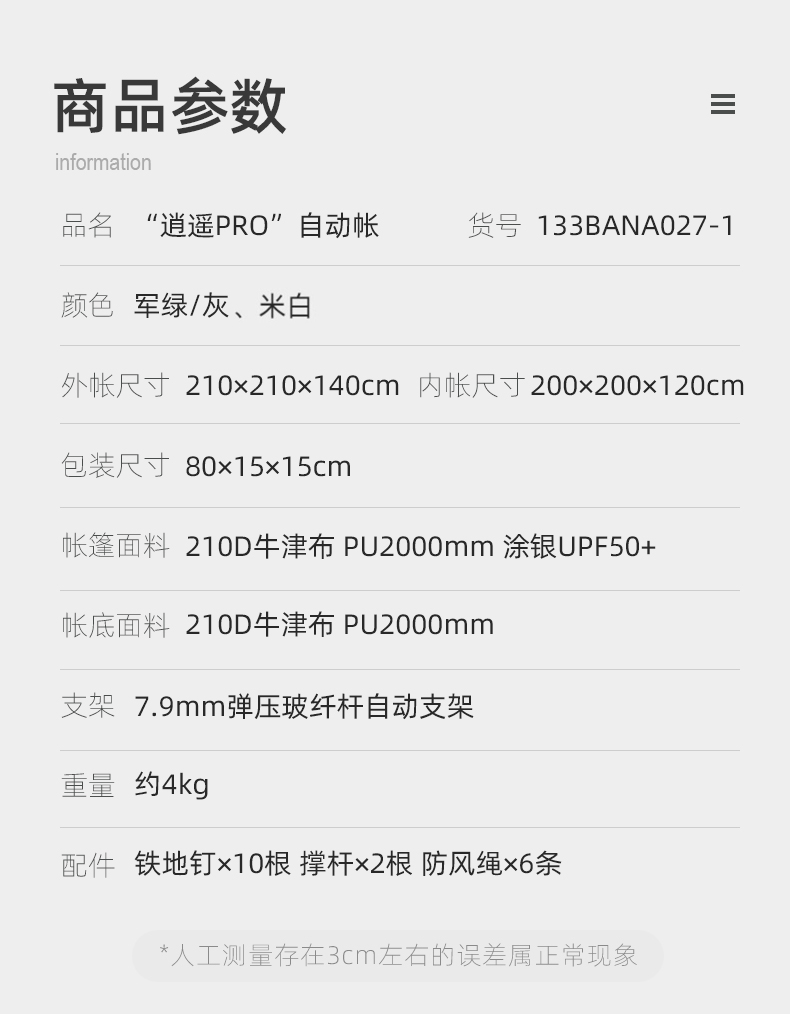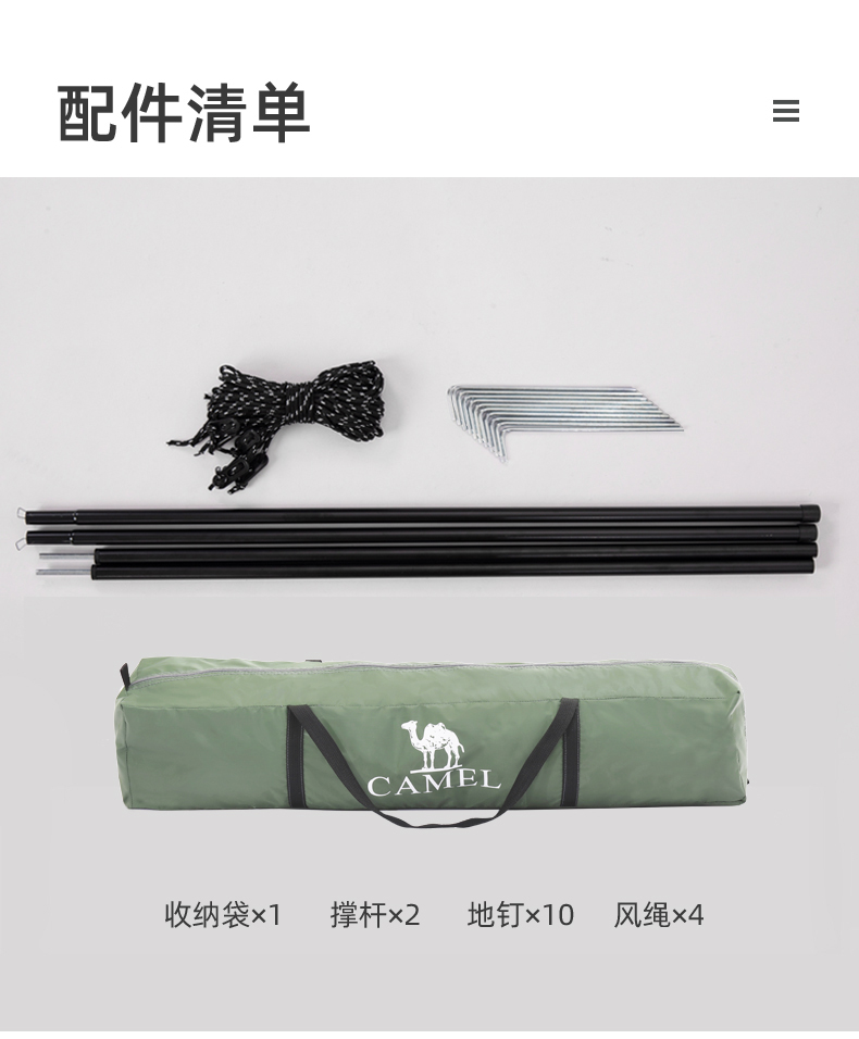 骆驼(CAMEL)逍遥pro露营户外便携式折叠野营天幕自动帐篷133BANA027-1 单位:个 军绿色